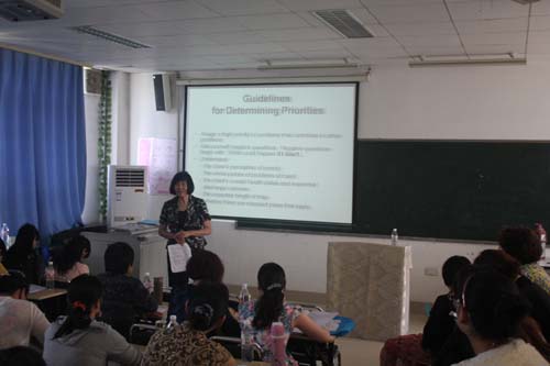 苏老师作为美籍台湾人,从1984年至今往返于美国、台湾和大陆之间传播先进的护理教育理念和教学经验。30多年来她一直热衷于护理教育和临床护理工作,其专业精神感人至深。这是她第二次来我校讲学,她凭着丰富的临床实践和教学经验,毫不保留地与培训班学员分享了多年来独创的批判性思维和护理情景模拟的教学方法和经验。培训结束前,刘化侠教授、张爱华博士分别主持小组座谈,征求本次培训和临床教学意见和建议。培训班学员纷纷反映,此次培训收获很大,不仅学到了先进的护理教学理念和教学方法;而且提升了临床教学中的评判性思维和模拟教学的意识及其技能;并表示要将学到的知识和方法应用到工作中。