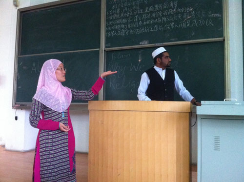 张先生首先开始围绕以“世界文明的格局、中国文明走向世界”为核心的交流,进而展开对“世界文化、宗教本质、伊斯兰文明、狭隘的宗教主义是信仰的枷锁”等内容的分享与介绍。其次由国际交流学院的优秀留学在校生Dr.Muhammad Asif主讲的《古兰经》部分节选以及伊斯兰教的相关核心基础文化:伊斯兰教的起源与发展、伊斯兰教的本质(和平与顺从)、伊斯兰教中尊圣行遵主命就是至善、“万物非主唯有安拉,穆罕默德是他的使者”“穆罕默德是伊斯兰教的复兴者而不是创始人,他是封印的万圣”、六大信仰五大功修、穆斯林的生活宜忌饮食禁忌等内容。深入浅出的为大家做了讲解,使大家进一步了解了世界文化的多样性和伊斯兰文明的精髓。
