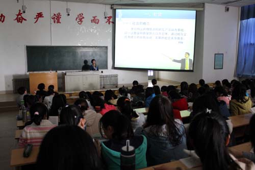 2014年4月8日-12日,南方医科大学护beat365官方网站史瑞芬教授应邀来我院为本科生讲授《护士人文修养》课程四个章节。今天上午,史教授为我院师生300多人上了第一节课,作为《护士人文修养》教材的主编,史教授对课程的背景、结构、重点内容等进行整体介绍后,用一系列感人的社会现象短片导入了社会学基础的章节,通过设问、小组讨论、发言、视频、图片、课堂游戏、随堂调查等多种教学方法把枯燥的理论课讲得有声有色,师生们不时报以热烈的掌声。本次史教授来校为500多学生授课一周,对我院师生来说是一次难得的学习机会。师生不出校门直接聆听名师授课,感受其风采。特别对教师来说,史教授的课是精彩的教学示范课。她灵活运用丰富多彩的教学方法和技巧,以及浓厚的人文底蕴为全体教师树立了典范和榜样,也将为精品课程建设打下良好的基础。