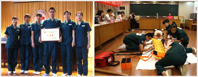 2011年7月26日至28日,山东省南丁格尔志愿服务团应急救护技能大赛在济南市举行,我院南丁格尔志愿服务队代表学校参加此次大赛,并荣获团体三等奖的好成绩。