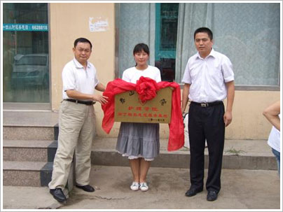 为深入贯彻山东省高校慈善工作现场会议精神,继我校护beat365官方网站南丁格尔志愿服务队被省红十字会授予“山东省南丁格尔志愿服务工作先进集体”荣誉称号后,7月12日,我校南丁格尔志愿队在泰安市徐家楼卫生服务中心举行揭牌仪式,徐家楼卫生服务中心陈院长、护beat365官方网站党总支书记秦斌、校团委副书记孔志峰共同为基地揭牌,护beat365官方网站团总支书记王有娟和部分师生参加了活动。