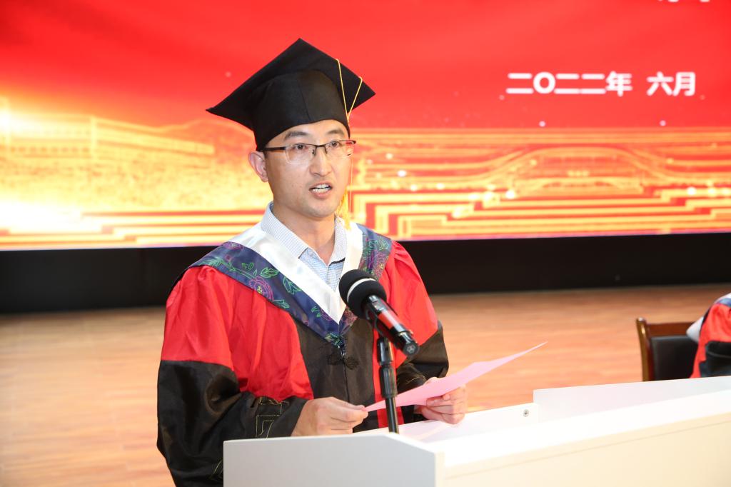 学院苏爱华老师作为教师代表回顾了2022届毕业生在校生活的点点滴滴,对正处于人生重要转折点的毕业生们给予叮嘱和期望。省级优秀毕业生代表李金潞同学进行了发言,深切表达了对老师的感激之情和对同学、朋友的不舍之情以及即将踏入社会的坚定信心。