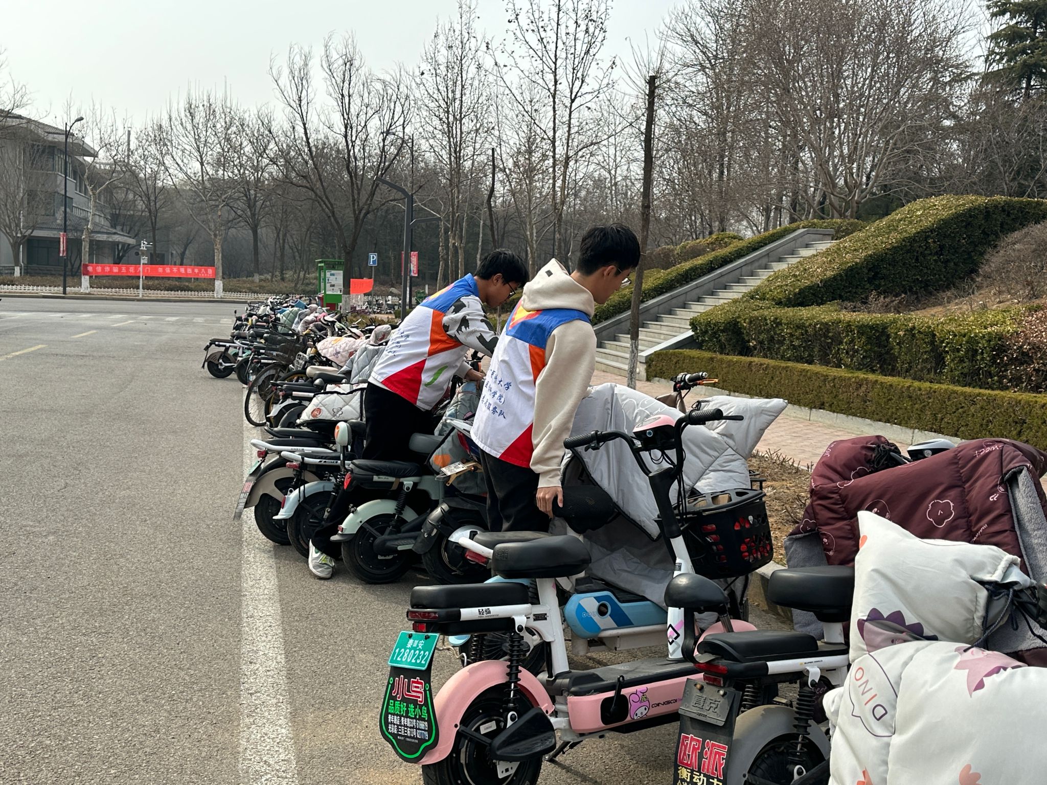 三月学雷锋,我们在行动。当天下午,韩亚轩、黄浩然、隋睿涵等多名服务队队员齐心协力,密切配合,将校园内排放不齐的电瓶车摆放整齐,将随意停放的共享单车推行至规定区域集中有序停放,展现了集体协作的团队精神和队员们良好的精神风貌。