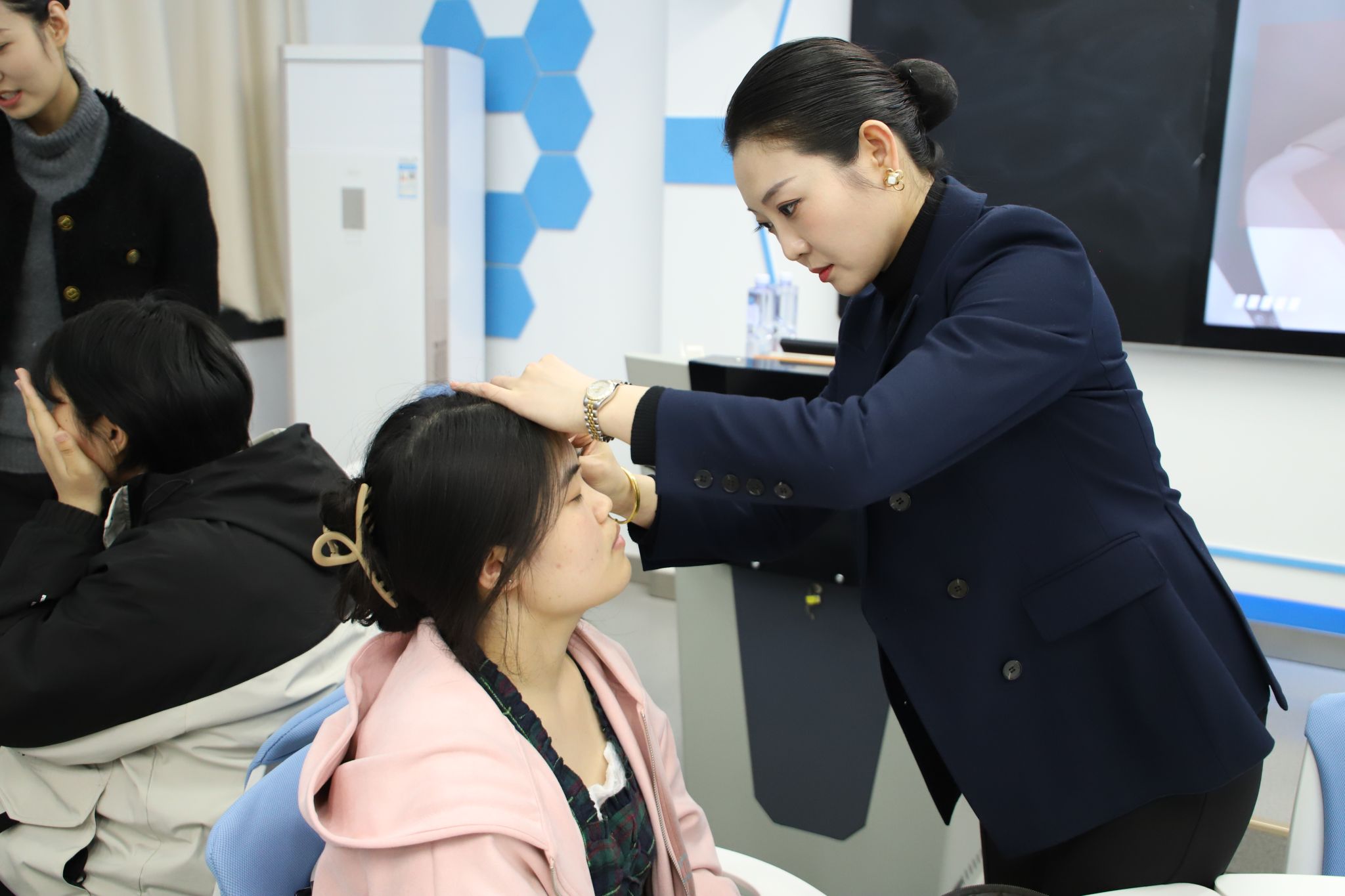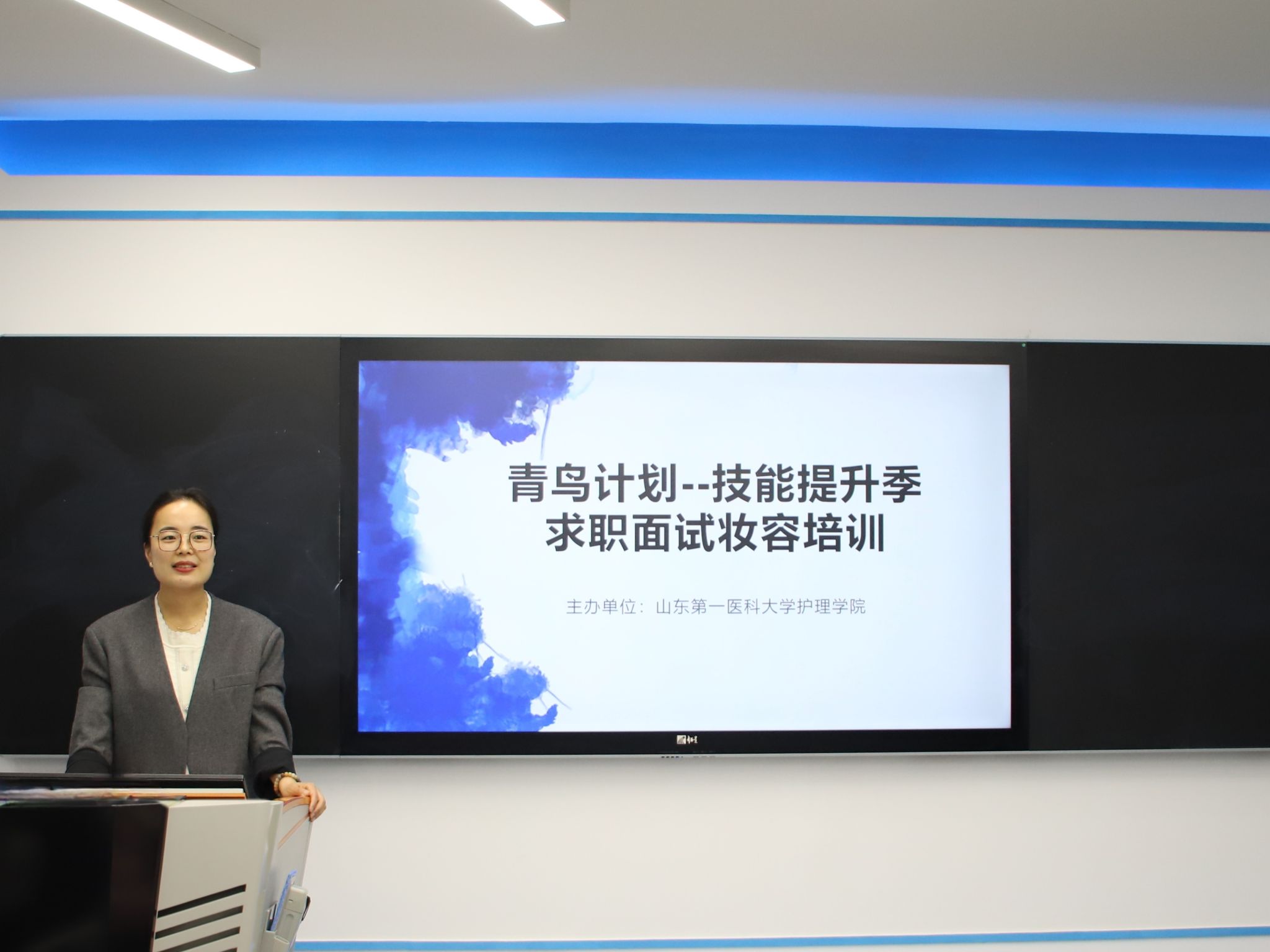 为提升同学们认识美、追求美、创造美的能力,帮助同学们在未来的求职过程中更好地塑造职场形象,提升求职成功率,3月29日,护beat365官方网站于教学南楼智慧教室举办“青鸟计划·技能提升季”求职面试妆容培训会。本次培训会特别邀请了学院校企合作航空方向雍雪虹、唐建萍、杨鑫悦、郝斐樊等四位专业老师现场授课。护beat365官方网站团委书记张恒丽主持本次活动。