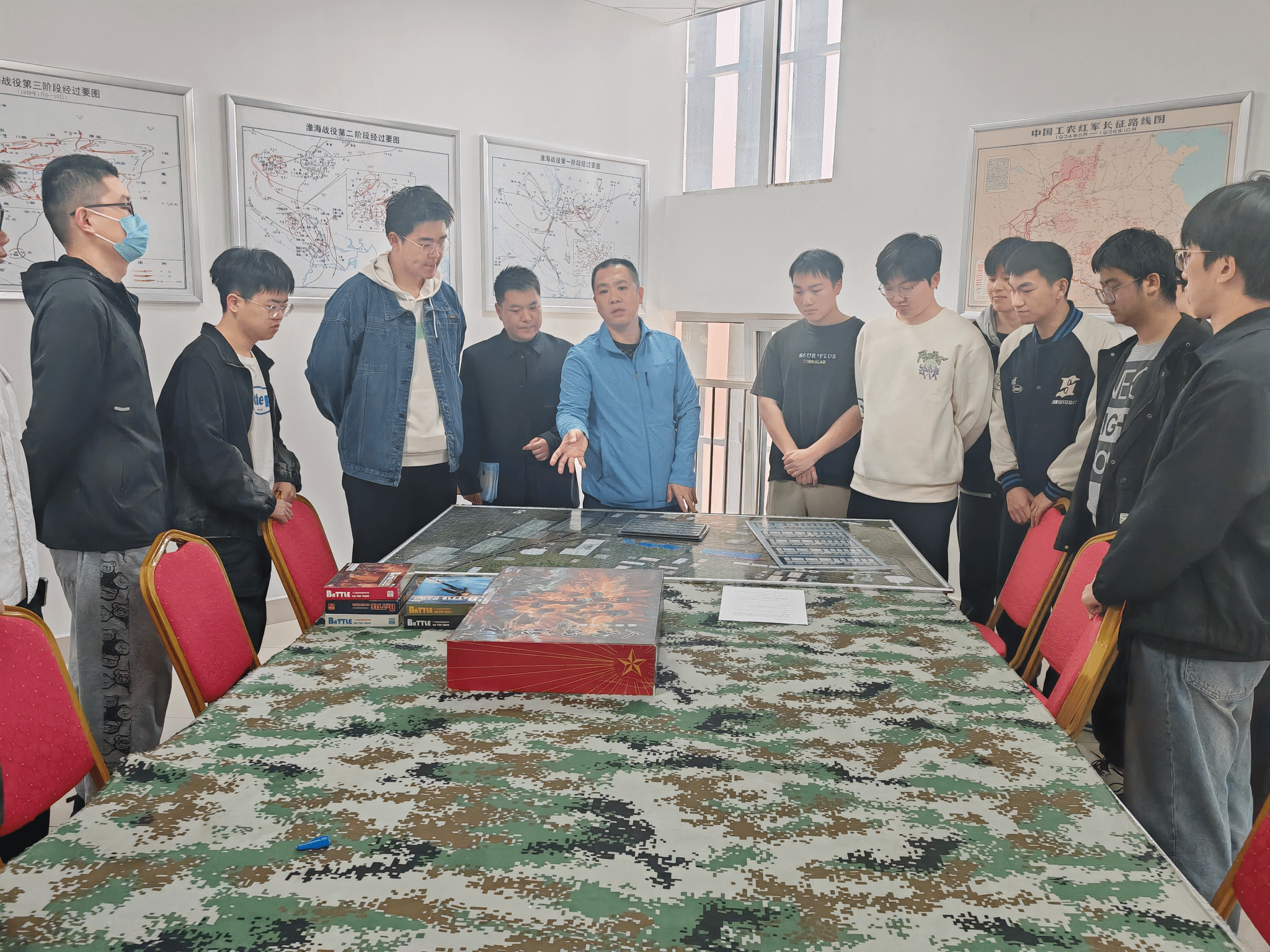 活动期间,安文老师带领同学们依次参观了装备器材室、手工兵棋推演中心、红蓝方推演室、兵棋推演中心导演大厅等专用教室。经过安文老师的讲解,同学们对被誉为导演战争“魔术师”的兵棋推演产生了极大的兴趣,从中了解到兵棋推演不是简单的玩游戏,需要充分运用统计学、概率论、博弈论等科学方法,对战争全过程进行仿真、模拟与推演,并按照兵棋规则研究和掌控战争局势。在讲解兵棋推演的同时安文老师对大学生征兵政策进行了宣讲,指出参军入伍献身国防是不负韶华的无悔选择,鼓励大家要积极响应祖国的号召。