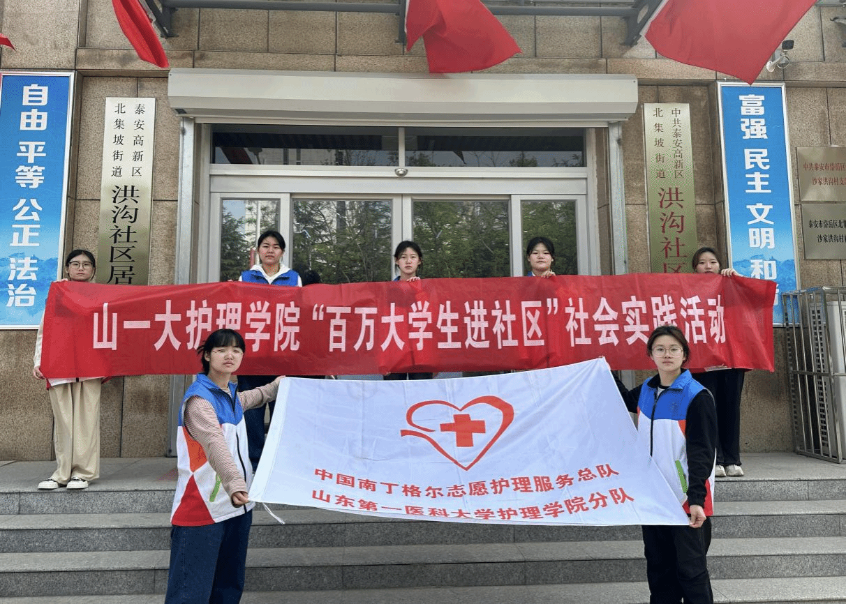 为扎实推进团省委关于开展“百万大学生进社区”社会实践活动的工作安排,将志愿服务融入基层实践,展现青年担当,彰显青春价值,近日,护beat365官方网站南丁格尔志愿服务队走进泰安市洪沟社区开展“百万大学生进社区”志愿服务活动。