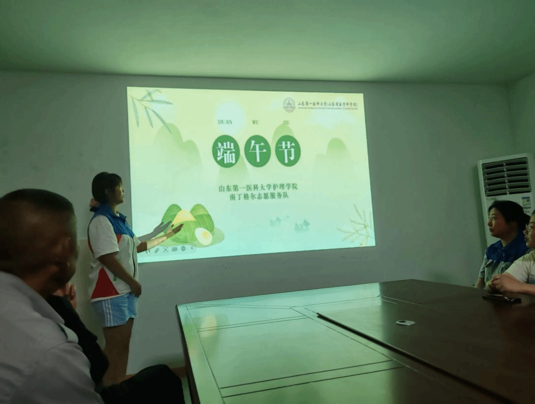 活动当天,队员们采用PPT讲解与知识问答相结合的形式,为社区居民分享了端午节的节日由来、历史人物屈原的故事以及各地区的节日习俗等相关文化知识。现场气氛热烈,居民们积极参与互动,共同感受着传统文化的魅力。