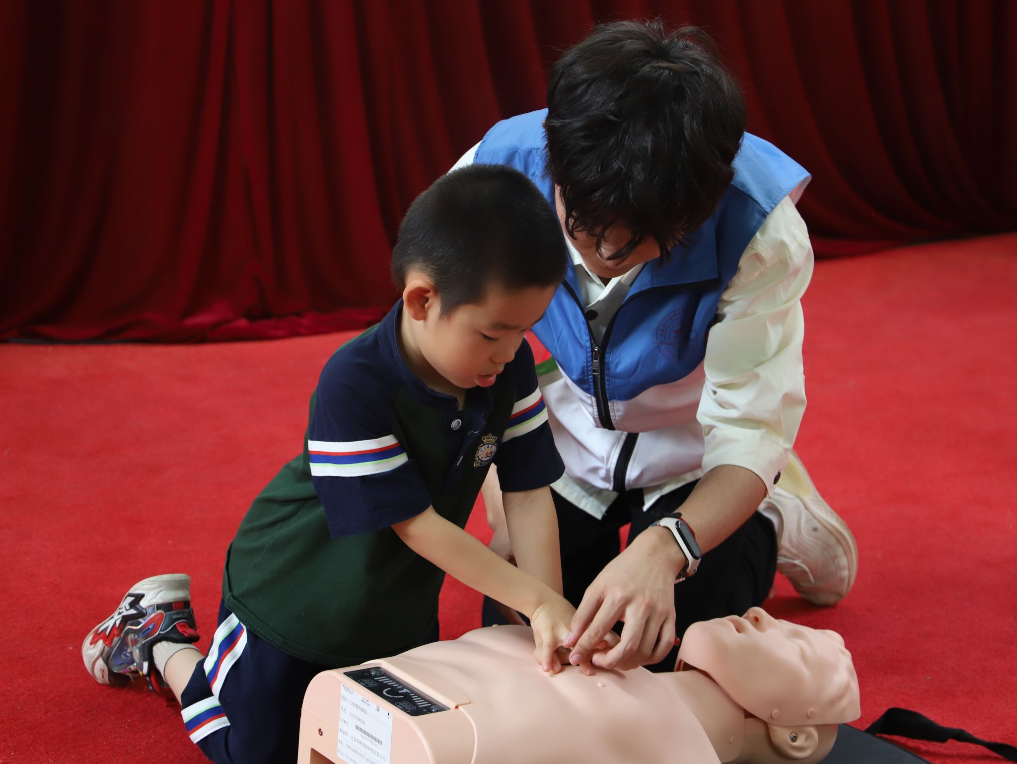 实践环节结束后,为提高孩子们的安全意识和急救技能,队员们还现场演示了心肺复苏术,并耐心地向孩子们讲解了在紧急情况下进行初步救助的方法以及呼叫救护车的重要性。