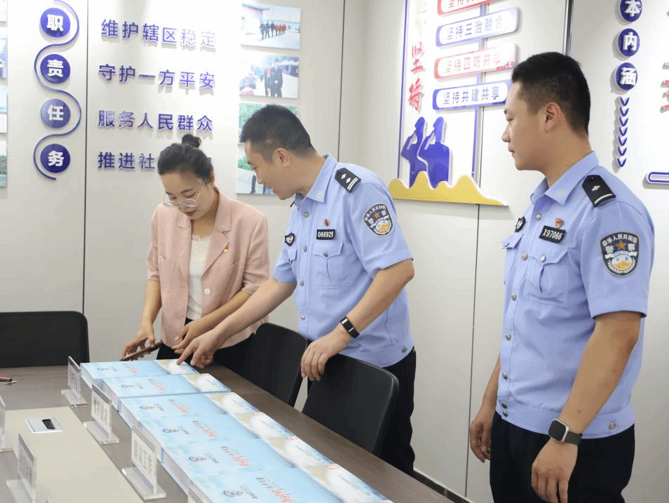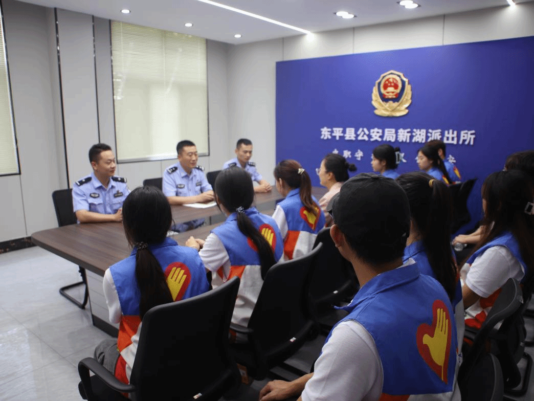 活动伊始,支部党员和入党积极分子到达新湖派出所会议室,派出所所长李磊和支部书记张恒丽就各自工作开展情况展开交流。李所长介绍,作为新时代的乡镇派出所,新湖镇派出所坚持“科技智慧赋能”“暖警育警爱警”两条主线抓建设,实现派出所工作提档升级,曾获第三批省级“枫桥式公安派出所”及“全省一级公安派出所”等荣誉称号。