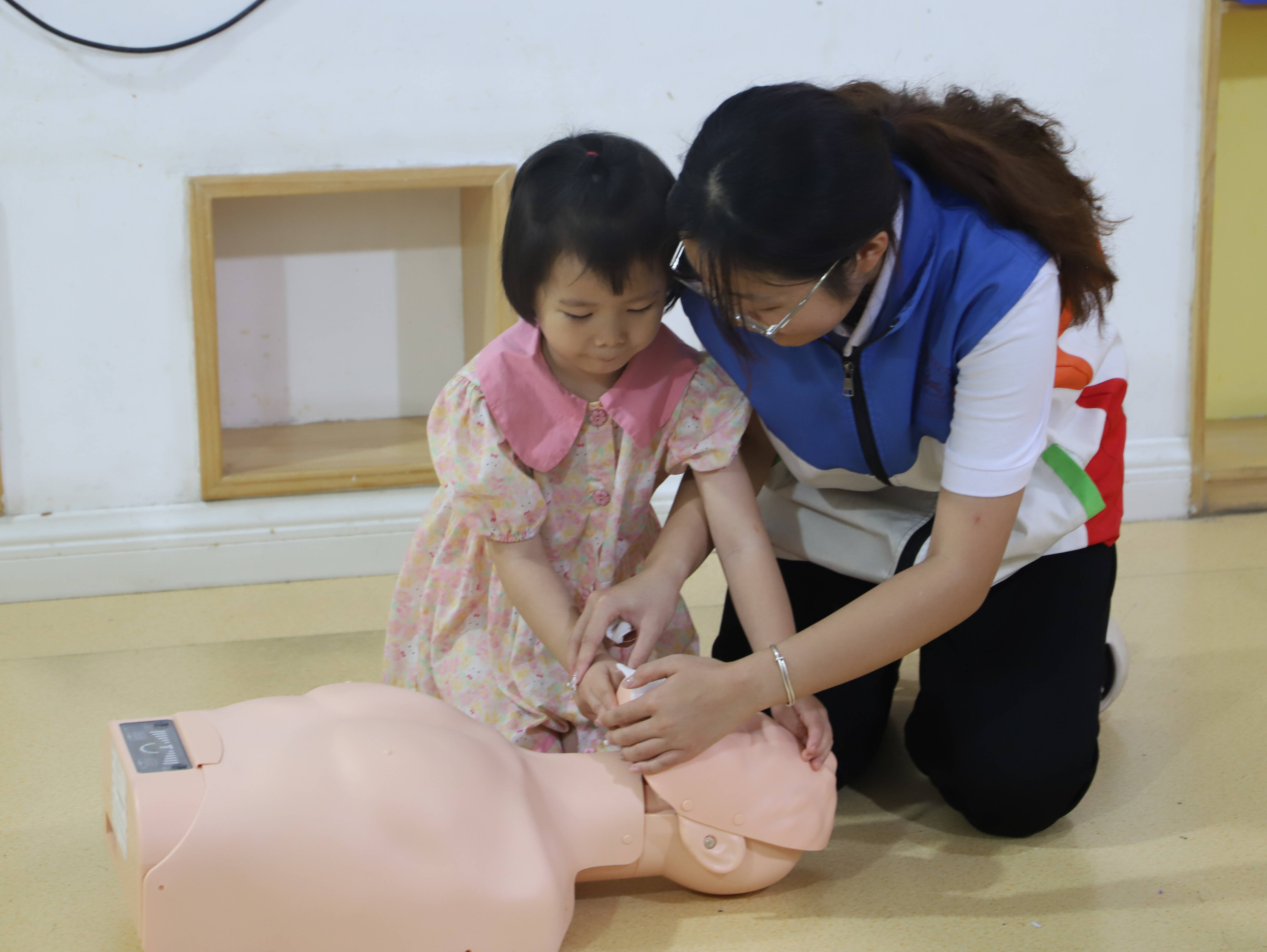 接下来,队员们进行了心肺复苏技能的现场演示,小朋友们则围坐一圈,全神贯注地观察和学习这一关键急救技能。活动最后,队员们与孩子们共同投入到了粘土作品的创作中,五颜六色的粘土在孩子们的手中变化万千,不仅激发了孩子们的想象力与创造力,也为本次活动画上了一个圆满的句号。