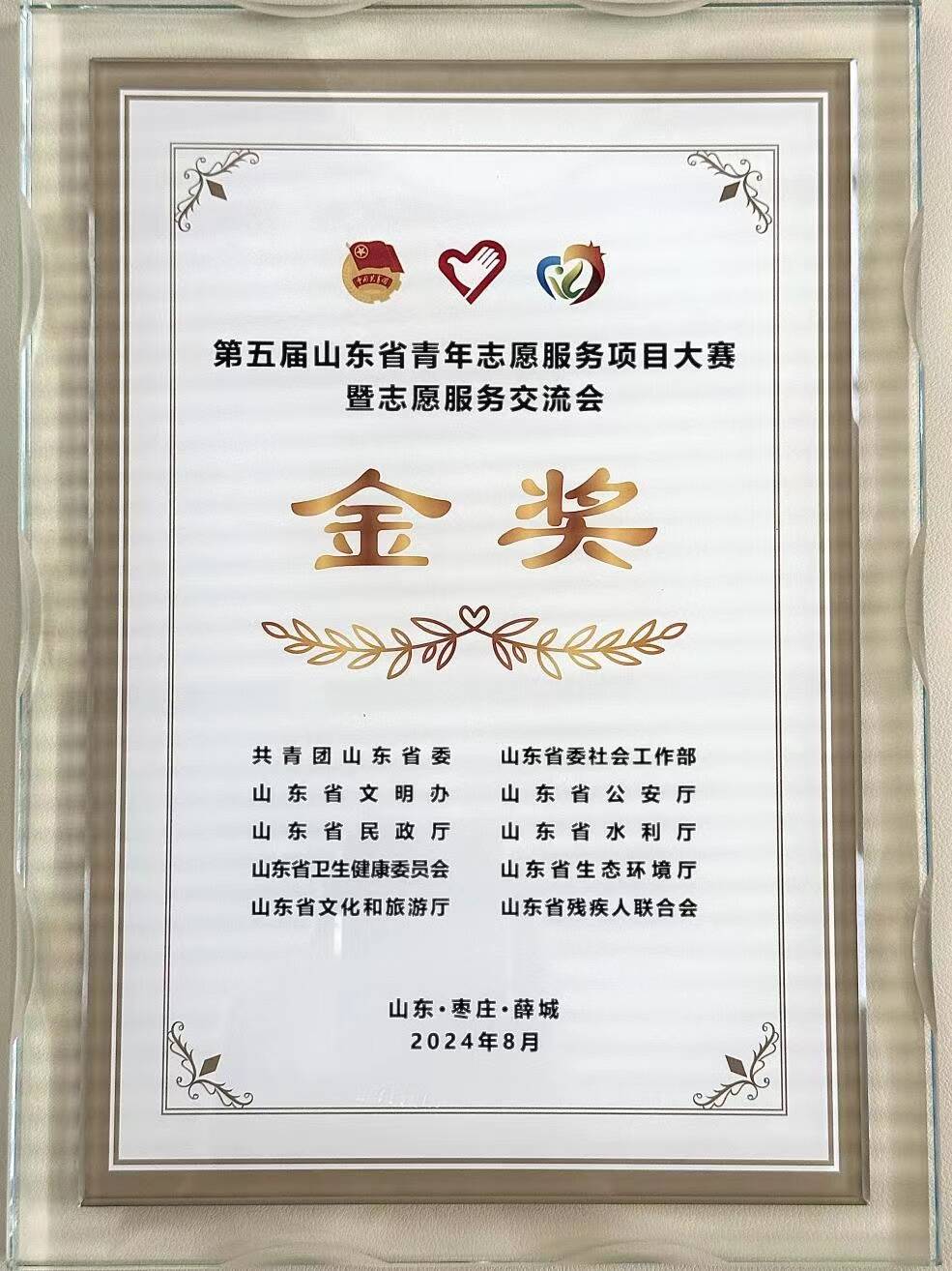 8月7日—9日,第五届山东省青年志愿服务项目大赛暨志愿服务交流会在枣庄召开,护beat365官方网站“V爱守护”南丁格尔为老助医志愿服务项目从初赛1802个项目中脱颖而出,冲进决赛;在决赛200个项目中,一路闯关夺隘,勇夺金奖,成为全省35个金奖项目之一,是全校三个入围决赛项目中唯一金奖。