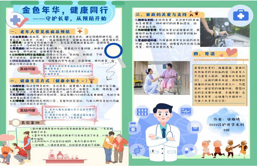 为丰富大学生暑假生活,提升其艺术表达能力和创造力,鼓励同学们运用所学医学知识,向家中长辈普及健康知识,近日,护beat365官方网站举办“携手长辈,共筑健康防线”宣传单制作活动。本次活动面向护beat365官方网站全体学生。