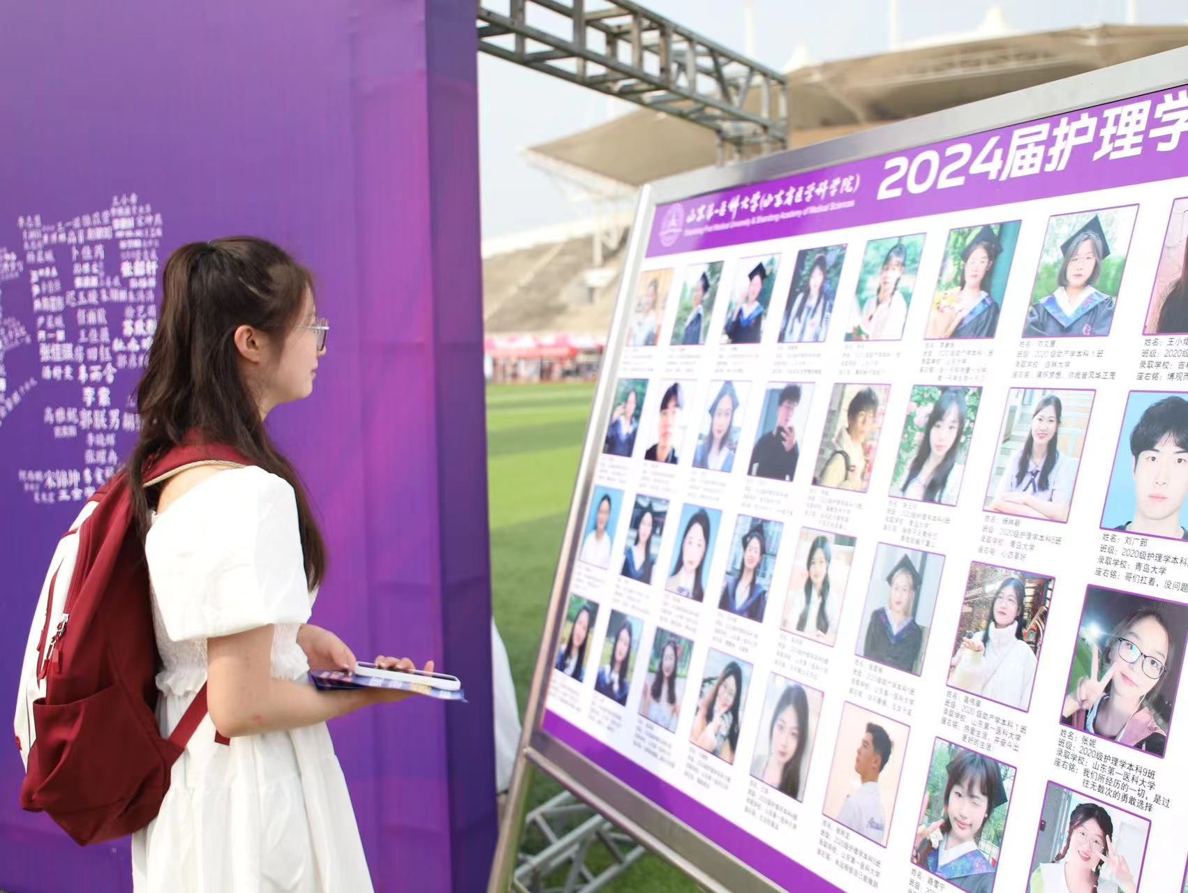 走进护理迎新区,印有全体新生姓名的展板成为新生们争相合影留念的热门打卡地。所有2024级护生名字组合而成的“最美护理”四个大字,彰显着学院的特色育人理念以及对每一位新生的重视和期望;“跬步千里,止于至善”的校训则激励着新生不断积累、不断进步。这里,不仅是护生进入护beat365官方网站的首站,也是一段充满无限潜力与可能的新旅程的开始。同学们的笑容与新学年的新篇章交相辉映,构成初秋校园里最美的一幕。