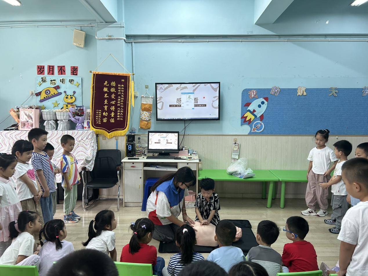 此外,活动还特别设置了心肺复苏急救知识教学环节。队员们耐心细致地讲解相关知识要点,并鼓励小朋友们利用假人模型进行实践操作,同时给予其及时的指导与纠正,旨在提升小朋友们的安全意识与自救互救能力。