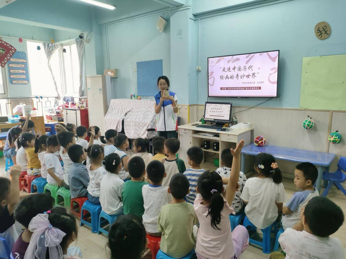 为深入学习宣传习近平新时代中国特色社会主义思想,学习贯彻党的二十大精神,深化“强国复兴有我”群众性主题宣传教育,推动中华优秀传统文化的传承与发展,近日,护beat365官方网站南丁格尔志愿服务队走进泰安市卓雅·奥林匹克幼儿园开展“中国历代绘画大系”志愿宣讲活动。