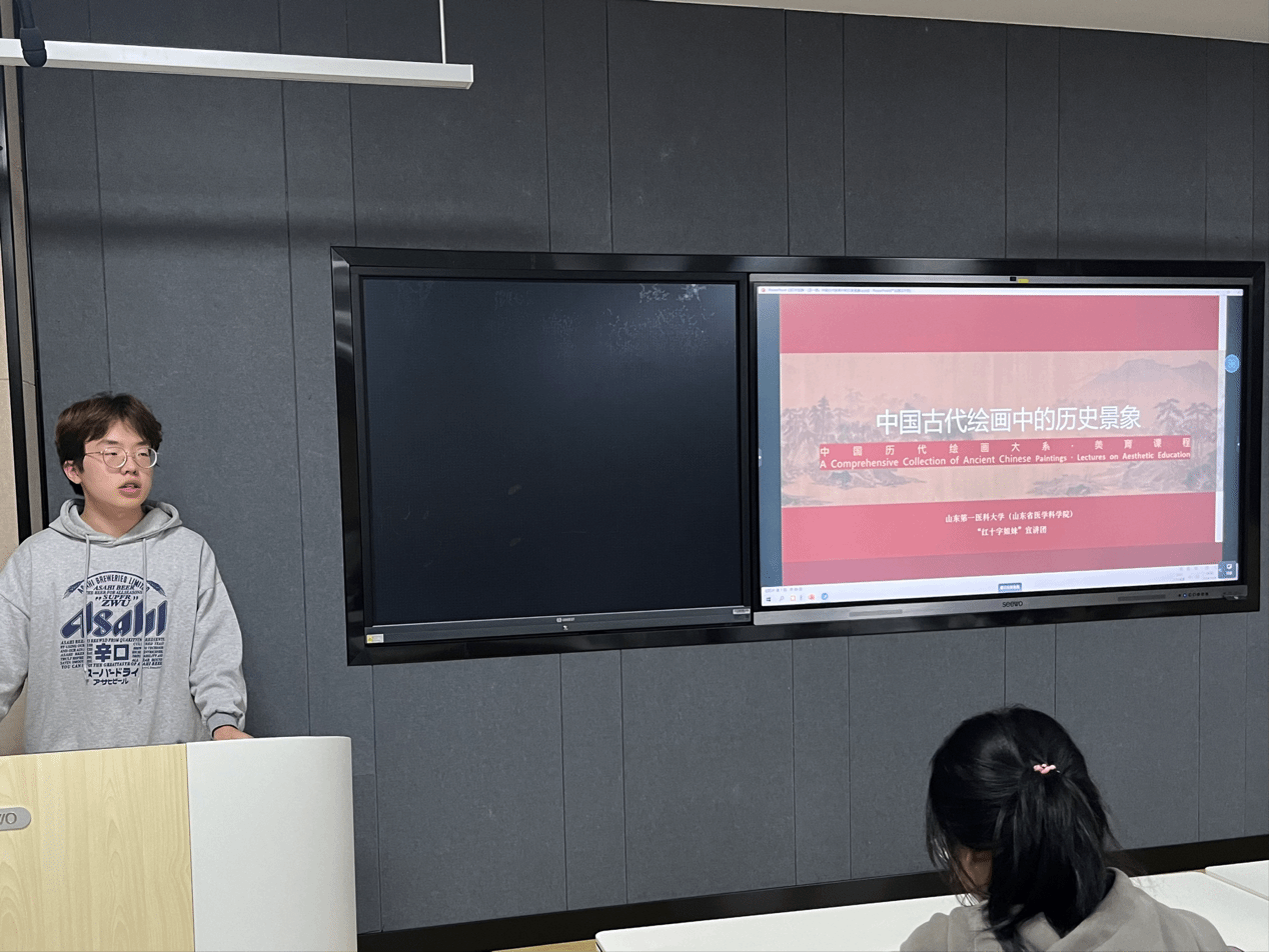 活动过程中,宣讲团成员通过展示中国古代传统绘画的优秀作品,系统讲解了中国古代绘画中历史景象的展现方式,不仅详细阐述了这一艺术形式的独特内涵及表现手法,还深刻揭示了其所反映的社会文化背景与时代特征。此外,成员们还介绍了中国古代绘画的几大重要流派及其代表作品,并借助一系列案例故事,生动展现了这些画作在历史记录和文化传承方面所起到的重要载体作用。