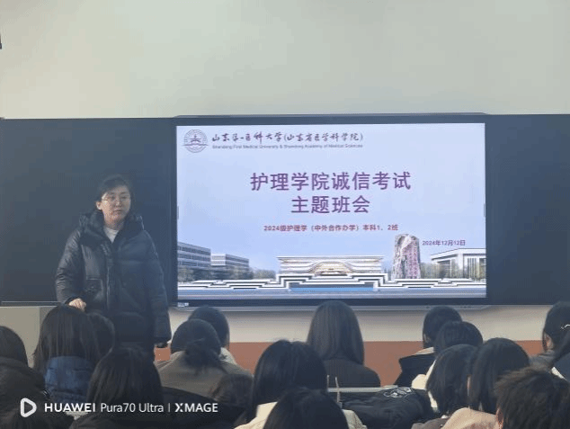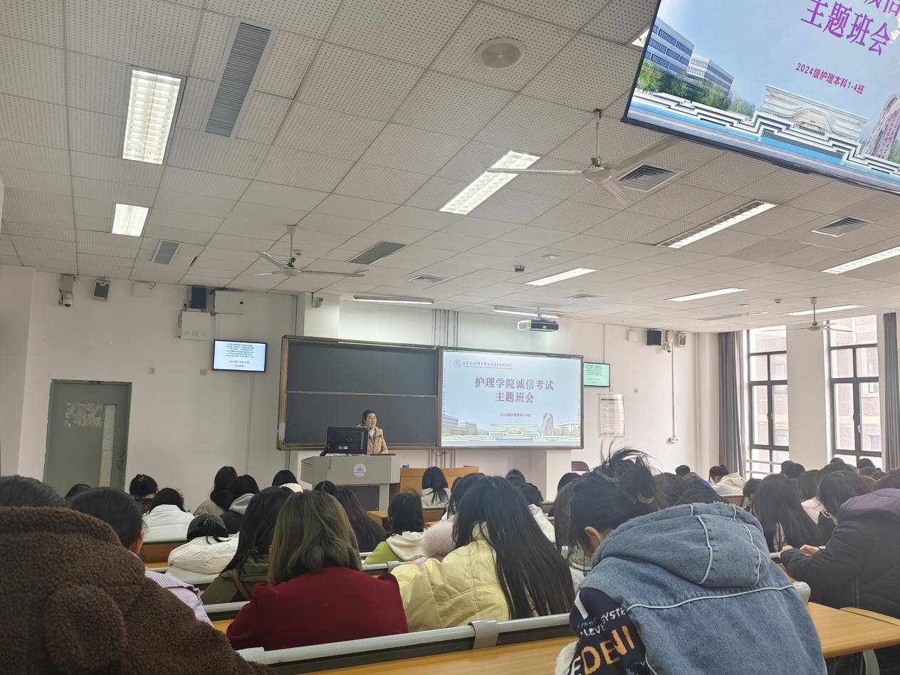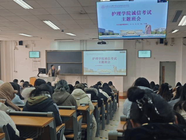 班会上,根据校(院)学工部下发的《关于加强考风考纪教育和学生安全教育管理工作的通知》要求,辅导员组织同学们集中学习《关于诚信应试致广大同学的一封信》《beat365官方网站(山东省医学科学院)考场规则》等文件,观看警示短片,学习相关考试作弊案例,签订《考试诚信承诺书》。辅导员要求大家要认真学习学校的考试纪律规定,严格约束自己的行为,端正考风考纪,杜绝考试作弊。