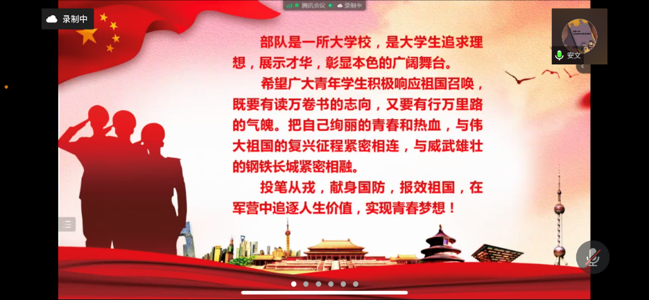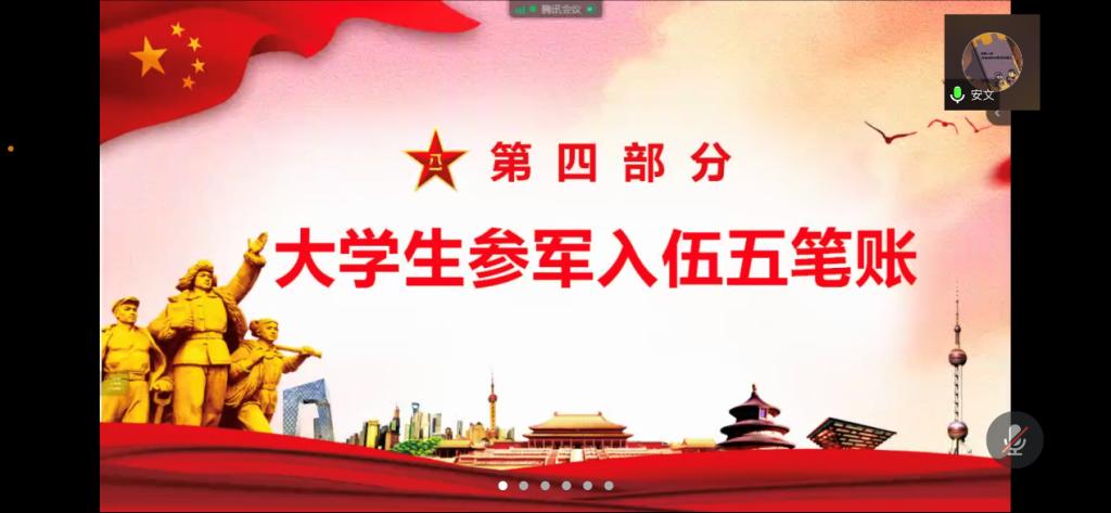 为进一步激发广大护理学子报效祖国、献身国防的热情,近日,护beat365官方网站再次举办毕业生征兵政策线上宣讲会。会议邀请校(院)武装部安文老师宣传大学生参军入伍最新政策,推动学院2022年大学生征兵工作。组织员赵学超主持会议。