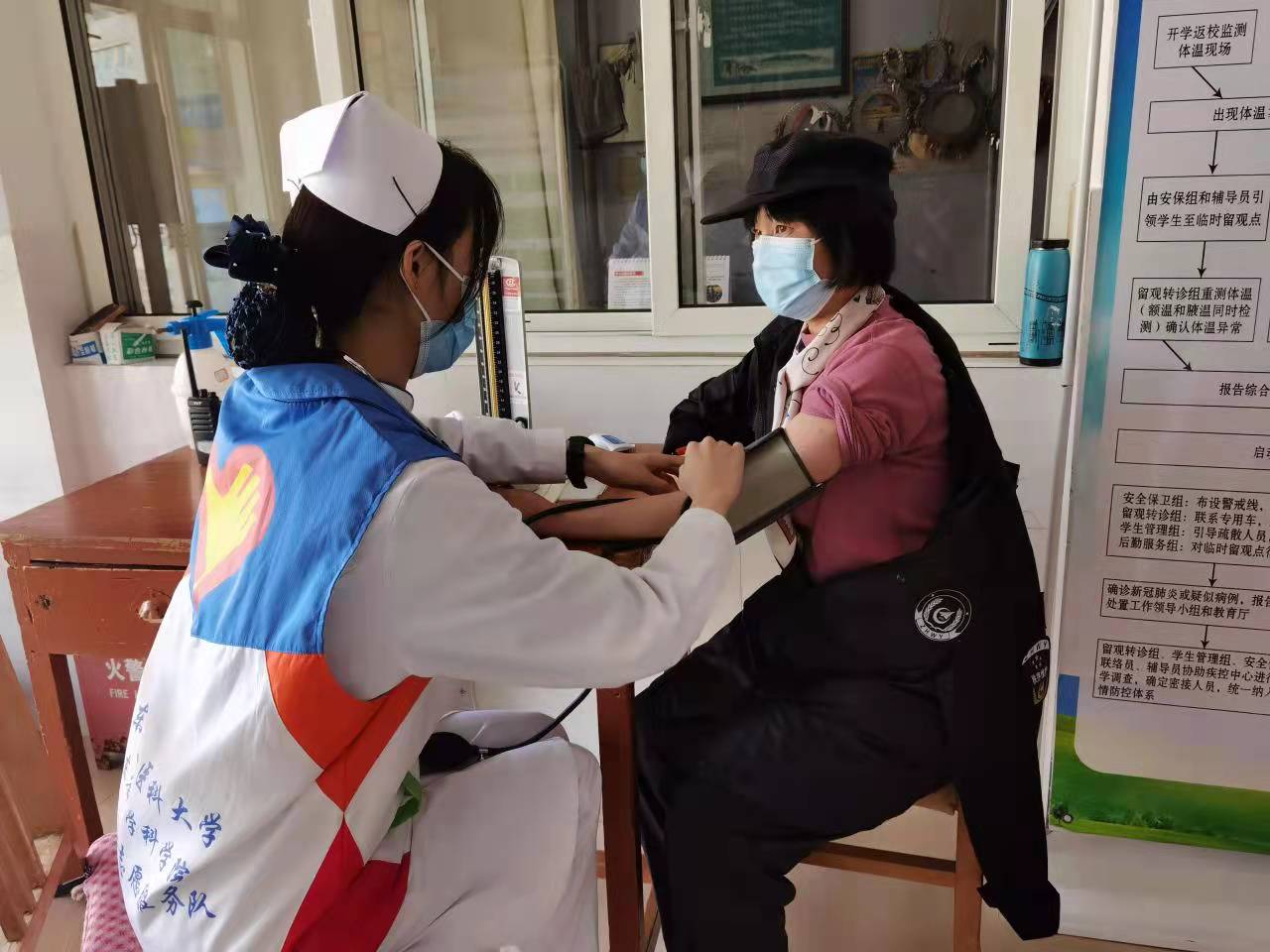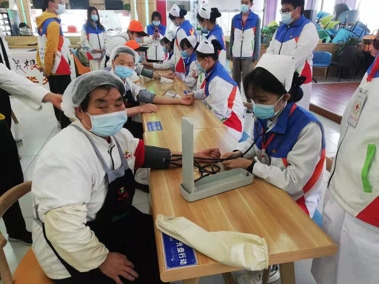 活动期间,队员们有秩序地组织餐厅员工、学生公寓楼管人员进行血压测量,志愿者操作娴熟,一丝不苟,以过硬的专业知识保证了测量的准确性。同时志愿者向后勤人员讲解健康保健知识、日常注意事项、营养饮食等卫生常识,也耐心地解答大家提出的问题。对于血压有异常的,队员们也对其饮食、睡眠、运动锻炼等方面给出了建议方案。
