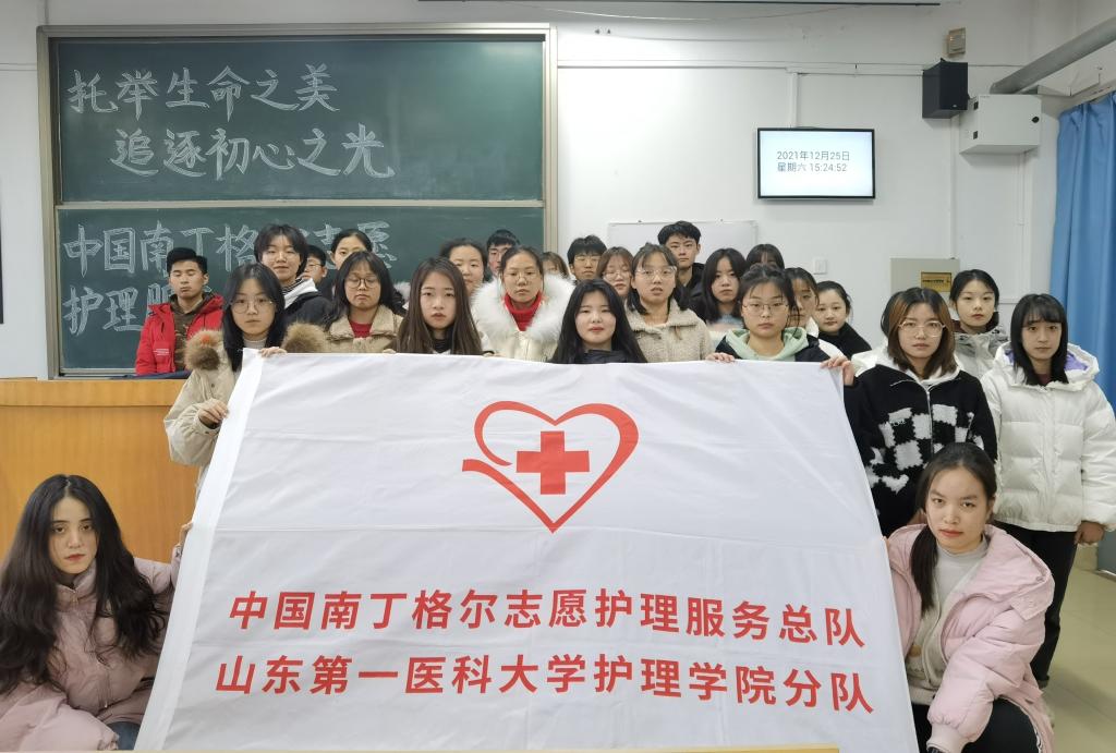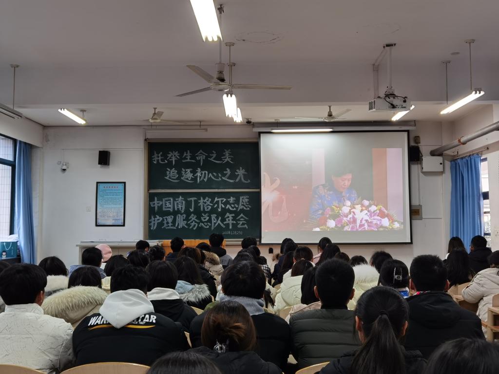 12月25日,中国南丁格尔志愿护理服务总队第九届年会在北京王府学校召开。学院南丁格尔志愿服务队在教学北楼A1009集体线上参会,观看年会直播。