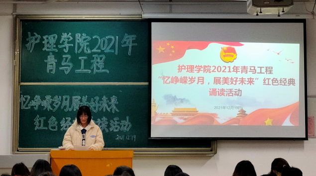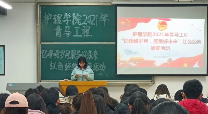 为加强青马班学员的爱党爱国教育,引导同学们重温革命历史、缅怀革命先烈,12月19日,护beat365官方网站青马班于教学南楼C1004召开“忆峥嵘岁月,展美好未来”红色经典诵读活动,也为本期培训画上完美句号。