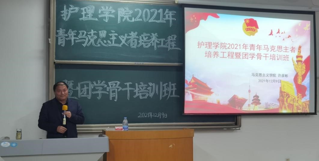 为进一步提高护beat365官方网站青马班学员的综合素养,12月9日,学院邀请马克思主义学院院长许彦彬教授于教学南楼C1004为学院青马班学员作报告。护beat365官方网站党委书记张延玲、副书记林桦、团总支副书记张恒丽及全体学员参加学习。