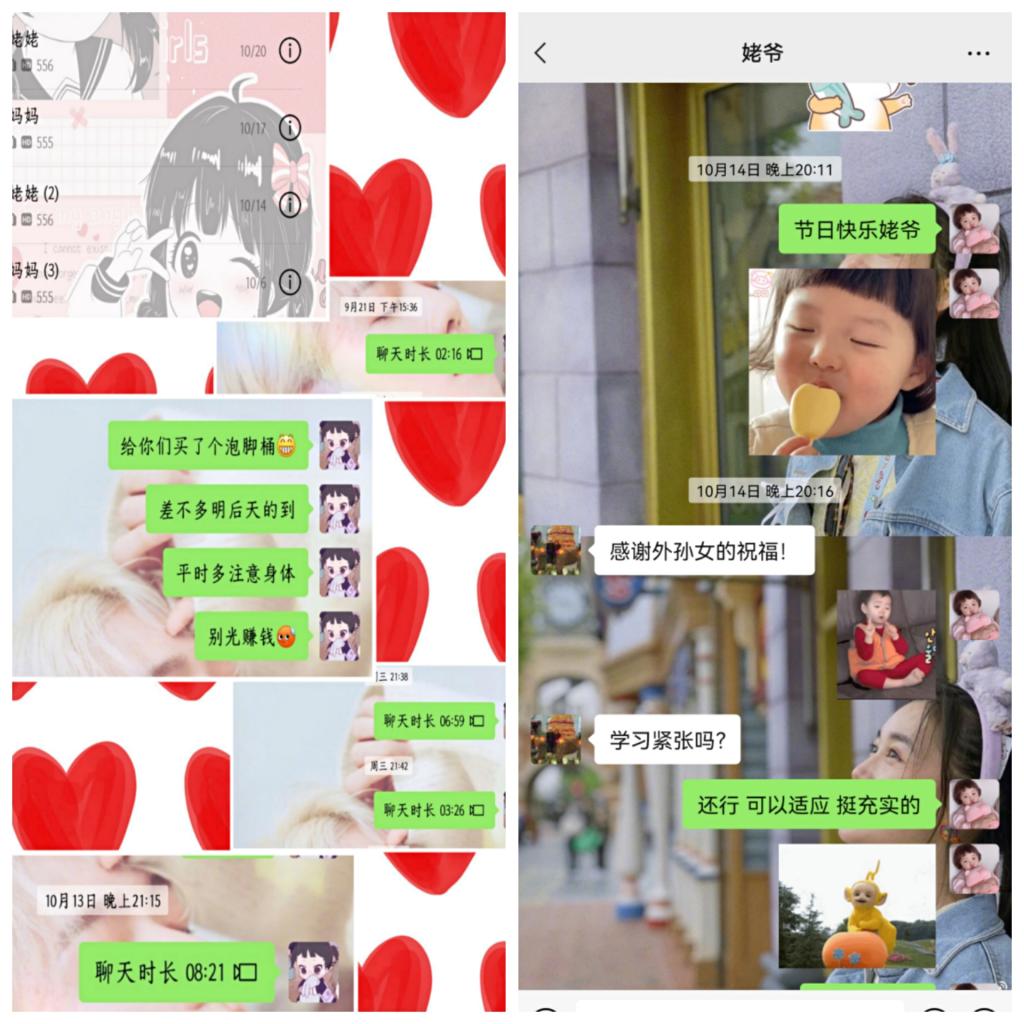 网络科技打破了时空局限,实现了跨地区的交流。通过微信与长辈线上视频聊天,向他们道一声问候。我们现在虽不能常常陪伴在他们身边,但我们可以通过一句语音,一段文字,寄托对他们的祝愿,给他们多一些关爱。