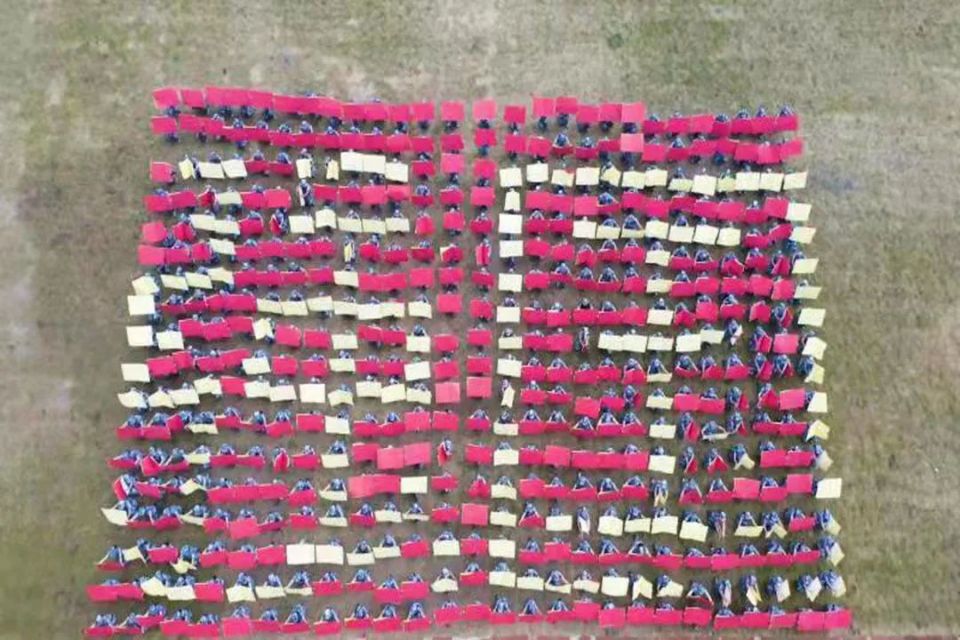 新生组成的团体操方队使人眼前一亮,用变换的队列先后组成“党徽”“100”“红船”等图案,同时齐声高呼“请党放心、强国有我”的誓言,展现出一颗颗热血的赤子之心。