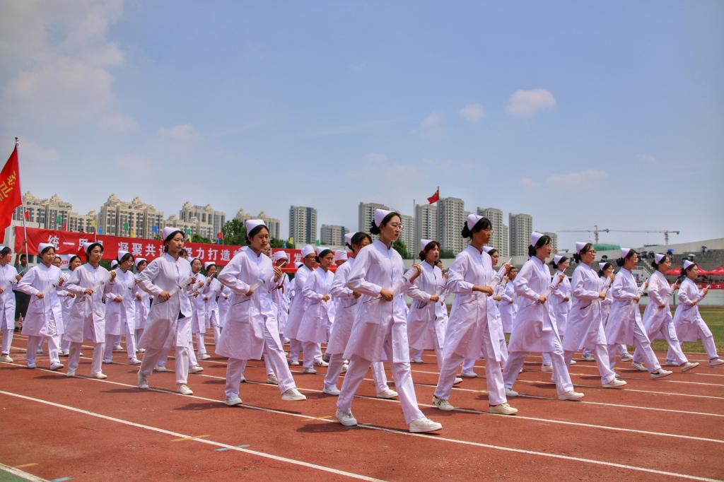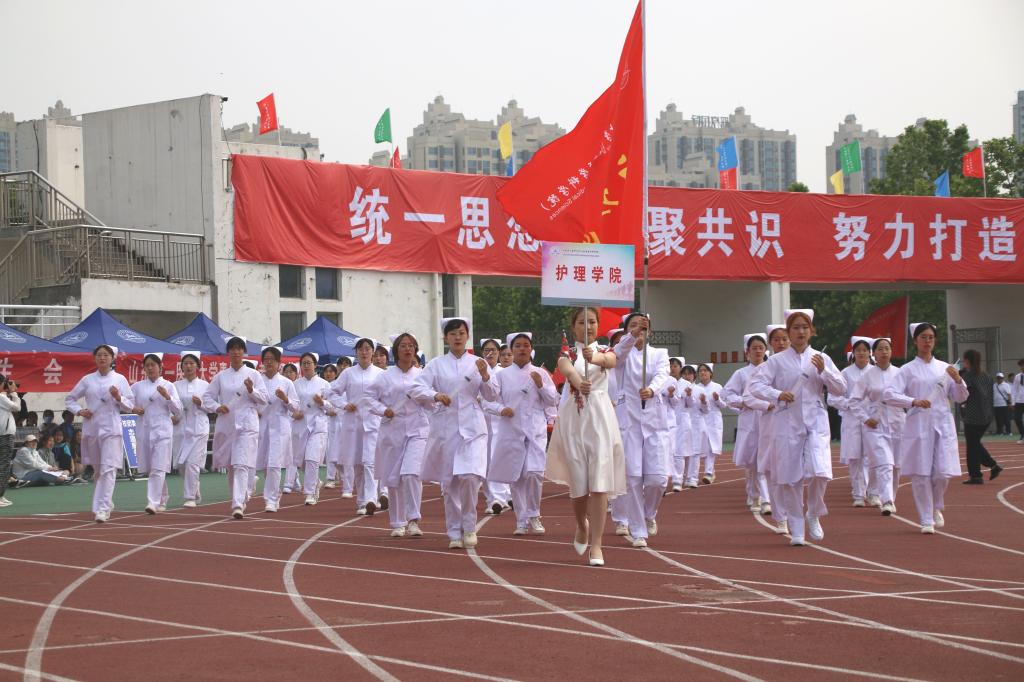 激昂的进行曲点燃了开幕式,护beat365官方网站的方队以整齐的姿态经过主席台,他们昂首挺胸,阔步在运动场,白衣飘飘,他们把青春最美的活力,都写在满满的微笑上。