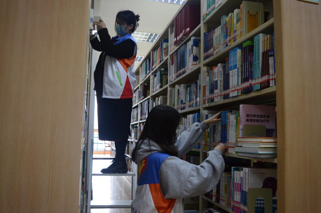 志愿者们有组织有秩序的前往各自负责的区域,参与图书馆书库的日常维护、自习室的管理以及向读者进行入馆的宣传工作。队员们将书籍整理好放置在桌子中间,协助管理员及时将书籍上架归位,积极向读者宣传普及图书馆的基本知识,让读者全方面的了解图书馆的管理及运营方式,为大家营造了一个安静、舒适的阅读环境,共同打造和谐“书香”世界。