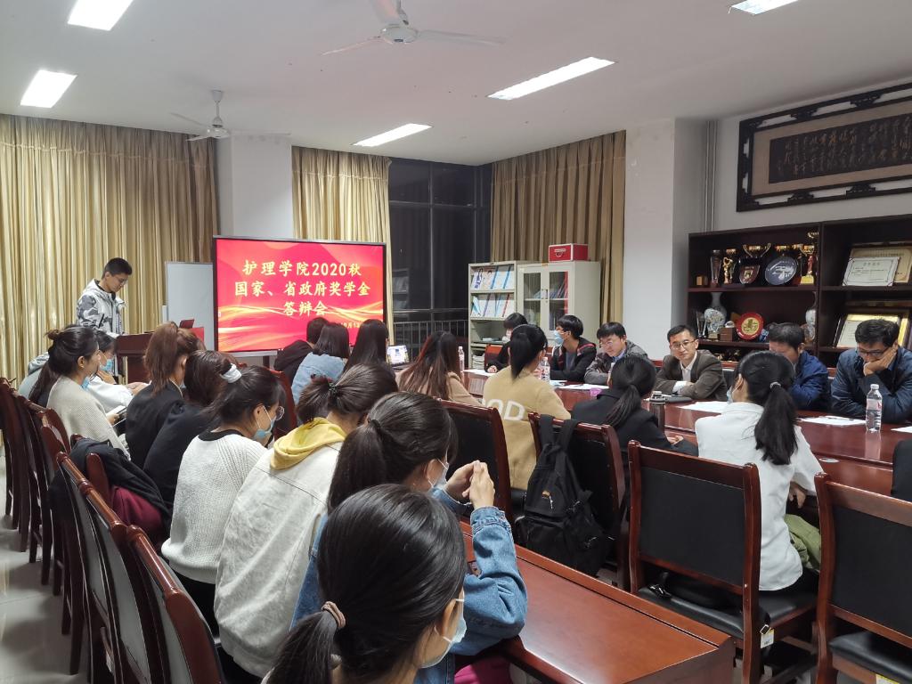 根据校(院)关于奖学金评定的工作部署和要求,切实做好国家奖学金和省政府奖学金的推选评审工作,10月13日,护beat365官方网站举办2020秋国家奖学金、省政府奖学金答辩评审会。学院党委书记张延玲、副书记林桦、全体辅导员和参评学生参加评审会。