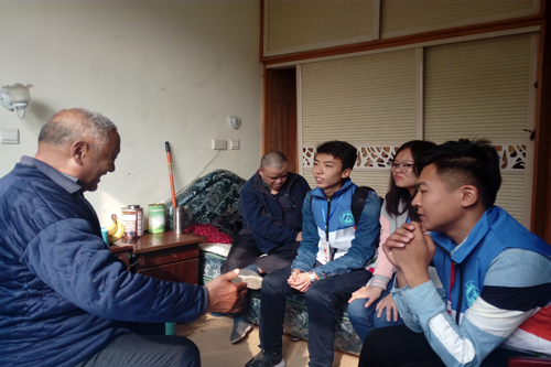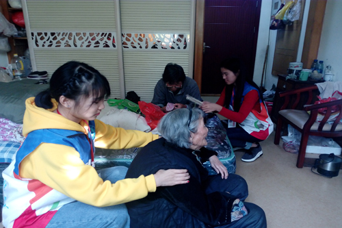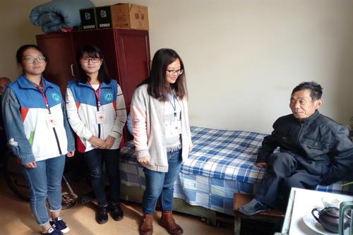 在福利院里,服务队队员首先协助工作人员打扫了卫生,随后队员们为老人按摩、陪老人谈心,并且与福利院相关人员进行了交流。福利院工作人员和老人们对服务队队员们的到来表示欢迎和感谢。