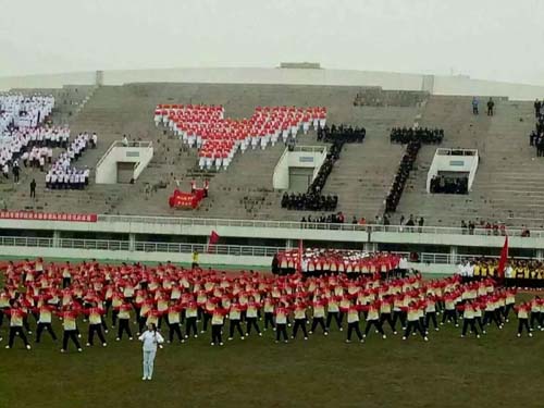比赛伊始,我院武术操方队身着统一校服,踏着整齐的步伐,喊着激昂的口号“泰医风采,护院领航”步入比赛场地。伸拳、推掌、踢腿,一招一式尽显青春本色。看台表演方队也不甘示弱,白衣天使们列队组成“火炬”图案,挥舞着手中彩色表演牌,起起伏伏间恰似跳跃的火焰,成为看台上一道亮丽的风景。同学们精彩的表演赢得了观众阵阵的掌声和评委的一致好评。
