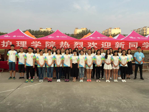 南丁格尔志愿服务队员身着自己设计的队服积极参加迎新活动