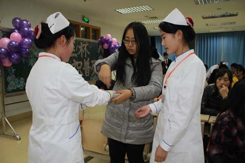为普及实用规范的急救知识与技能,加强同学们的创伤自救能力,护beat365官方网站南丁格尔志愿服务队于2014年11月14日至16日晚,在图书信息楼1-01举行了第三届“玉兰杯”急救知识普及活动,外国语学院、化工学院等九个非医学专业学院,约四百人参加了本次活动。