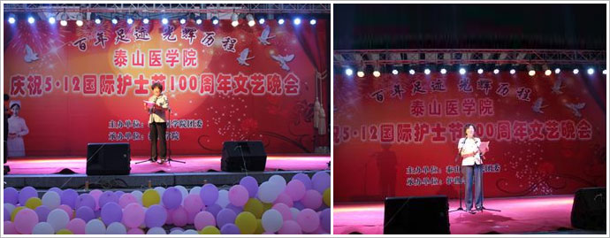 为迎接第100个国际护士节,5月8日晚,泰山医学院庆祝“5·12”国际护士节100周年文艺晚会在校本部文源广场隆重举行。校党委副书记郭爱英教授出席了晚会,解放军八十八医院、泰山医学院附属医院、学校有关职能部门和各院部系领导以及护beat365官方网站全体师生共同观看了演出。