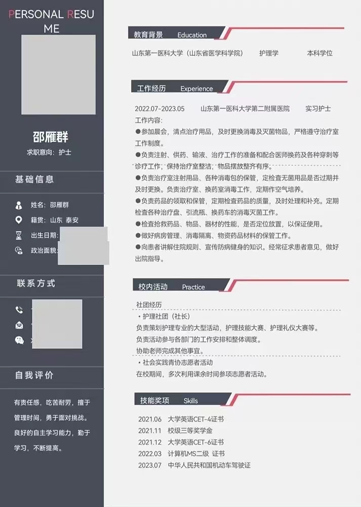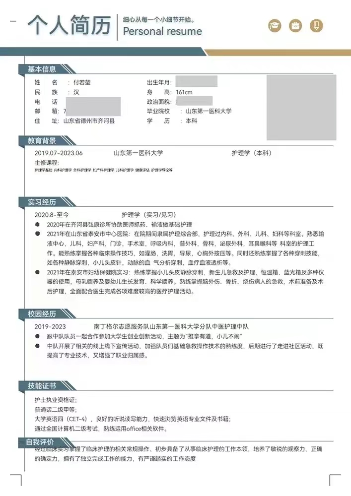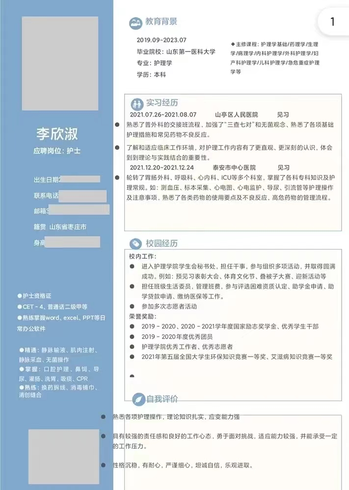 为了帮助护理学子增强就业意识,充分做好就业前的准备,6月—7月,护beat365官方网站开展“执笔未来 谱写韶华”简历设计大赛活动。2023届毕业生——2019级护理实习生参赛。