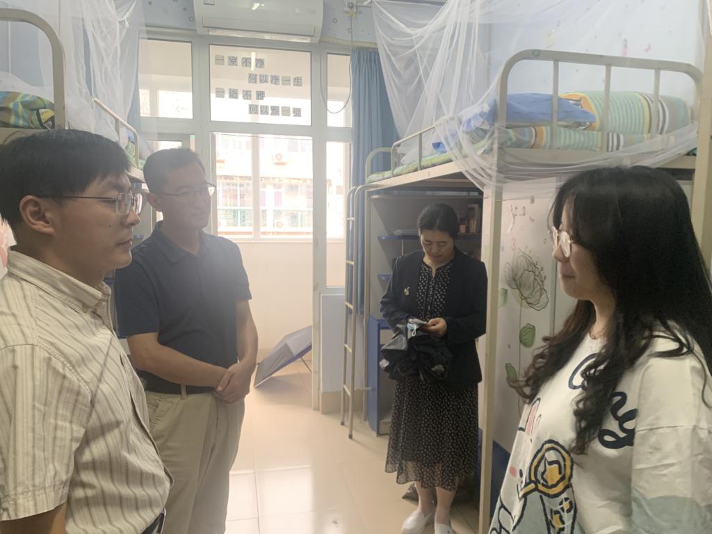 为帮助新生尽快适应大学生活,8月28日,护beat365官方网站党委书记张延玲、副书记林桦和学工办、团总支负责同志以及新生辅导员等,走进学生公寓看望2022级新生。