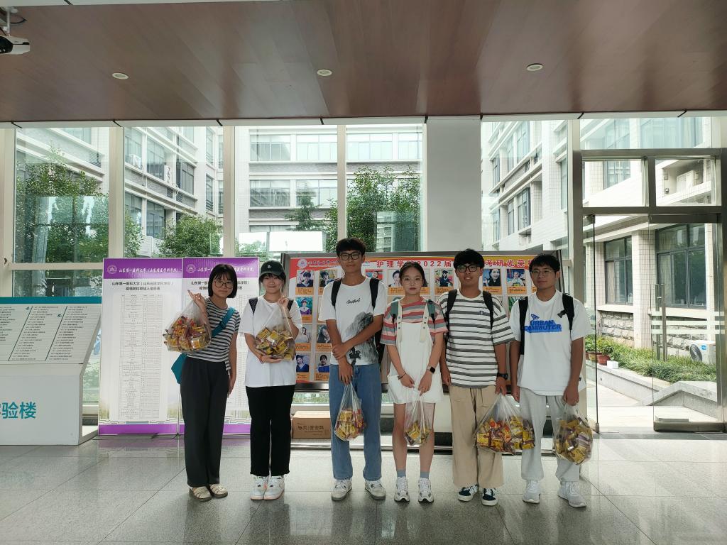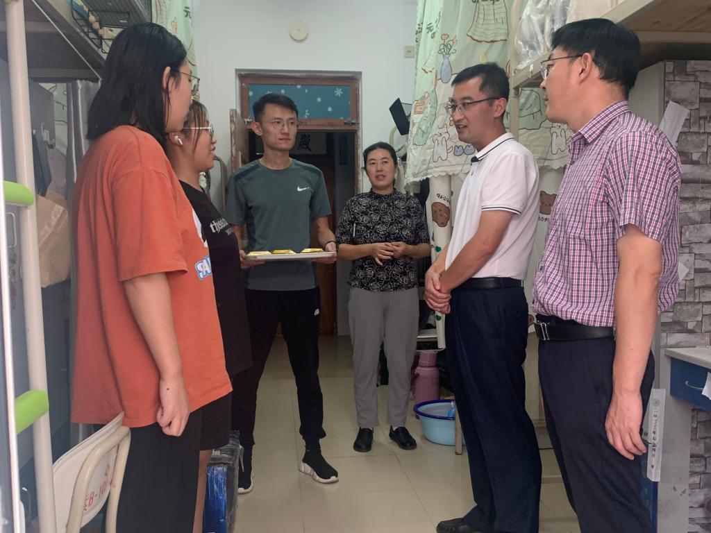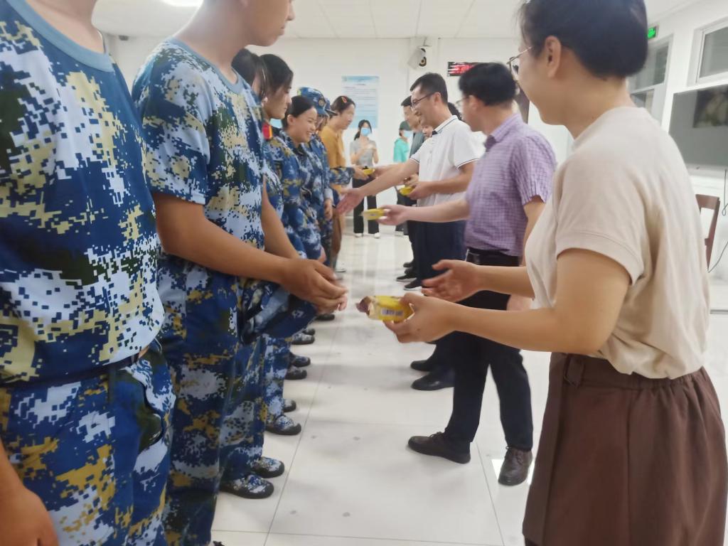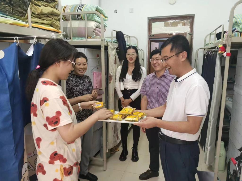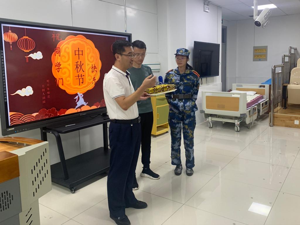 月满中秋,情满护院,中秋节与教师节双节来临。为了让护beat365官方网站全体师生尤其是2022级新生在祥和愉悦的氛围中欢度中秋,感受家般的温馨与关爱,9月9日下午,护beat365官方网站党委书记张延玲、副书记林桦、全体辅导员,进宿舍、进教室、进军训场为护理学子们发放中秋月饼,将学院的深切关爱和温馨祝福送给同学们。