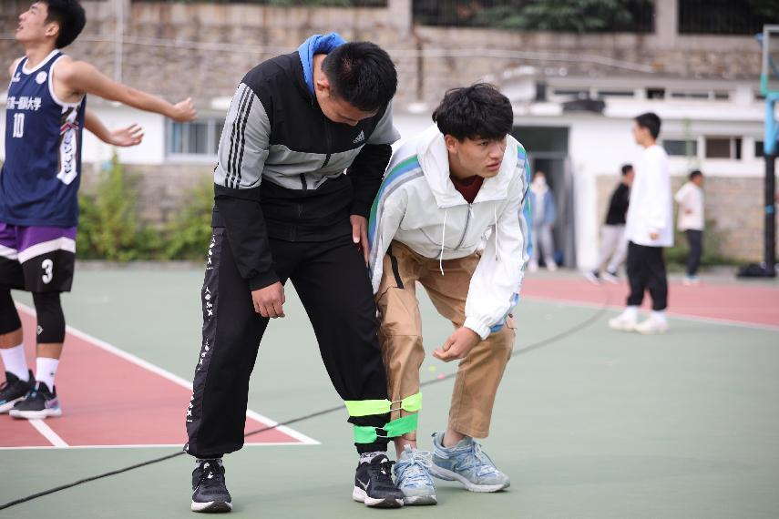 伴随同学们精彩的文艺表演,运动会拉开帷幕。此次活动包括运球接力赛、花样接力赛、三人四足赛跑、爱的抱抱和娱乐活动“123”木头人五个项目。在运球接力赛中,拍打篮球的音律与气球爆破声交织,让比赛渐入佳境。在花样接力赛中,同学们用灵活的身体和挥洒的汗水表达着对获得胜利的期望。在四人三足赛跑中,步伐在“一二一二”的口号中变得越来越整齐。