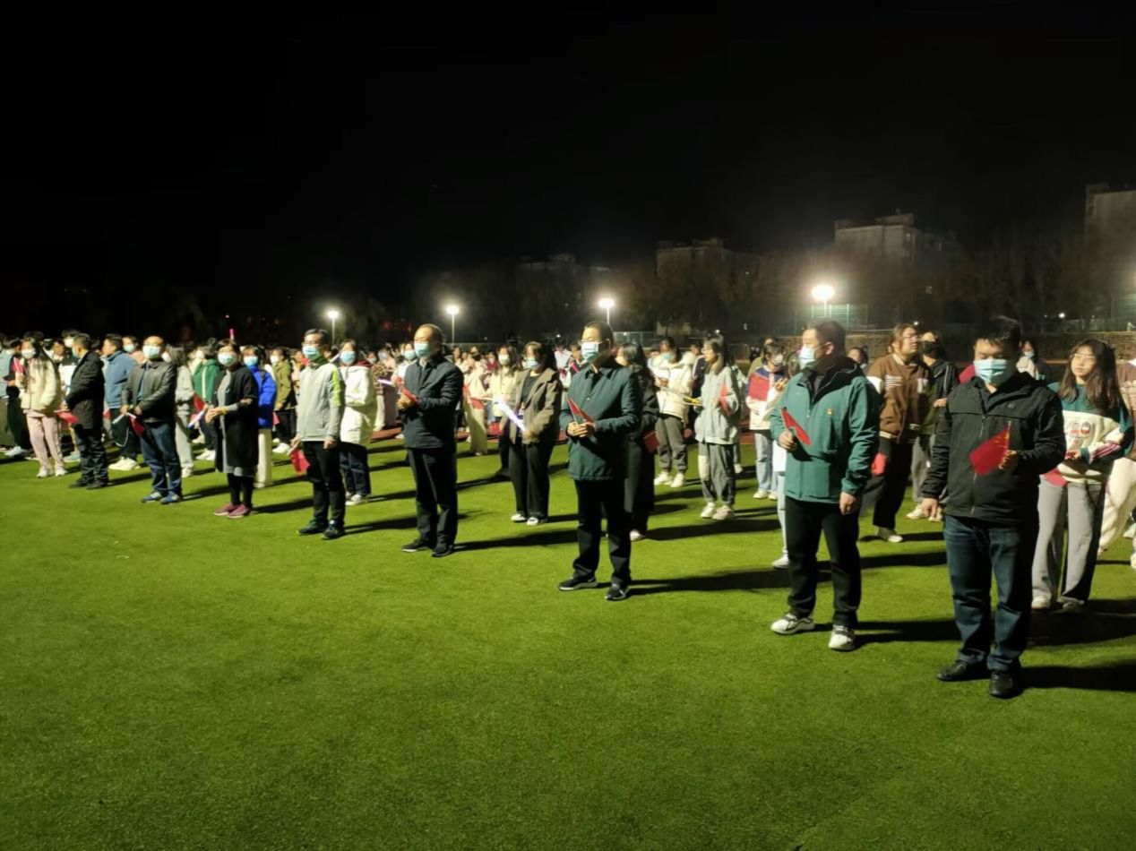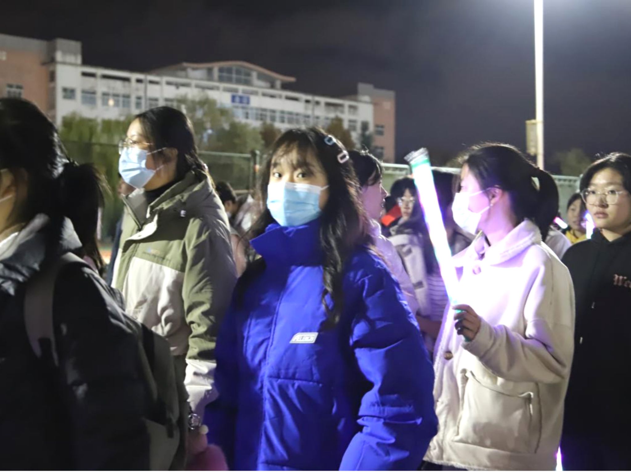 张贤雷在致辞中,首先充分肯定了同学们在校园疫情防控中的责任担当,希望大家坚定信心信念,看见光,追逐光,成为光,散发光,传播光,让青春在全面建设社会主义现代化国家的火热实践中绽放绚丽之花。随后,在领跑员的带领下,老师和同学们手持荧光棒,围绕跑道开始夜跑,在夜色中大家成为最绚烂的光影和风景。友谊也在这步伐中升华,青春同样在跑步中绽放光彩。流光溢彩、炫酷斑斓,大家用奔跑的激情和炫彩的荧光挥洒自己的青春轨迹,用动感酷炫和闪闪荧光照亮了校园的夜。