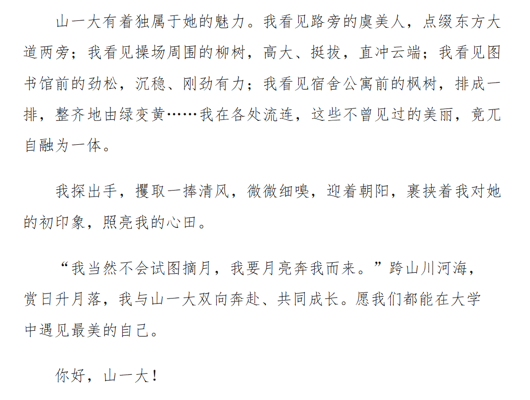 大家以充满诗意的笔触点缀校园风景,用一幕幕影像记录校园最美“瞬间”,从作品中,我们感受到他们对山一大的憧憬与热爱,一起欣赏学弟学妹们眼中的校园初印象吧!