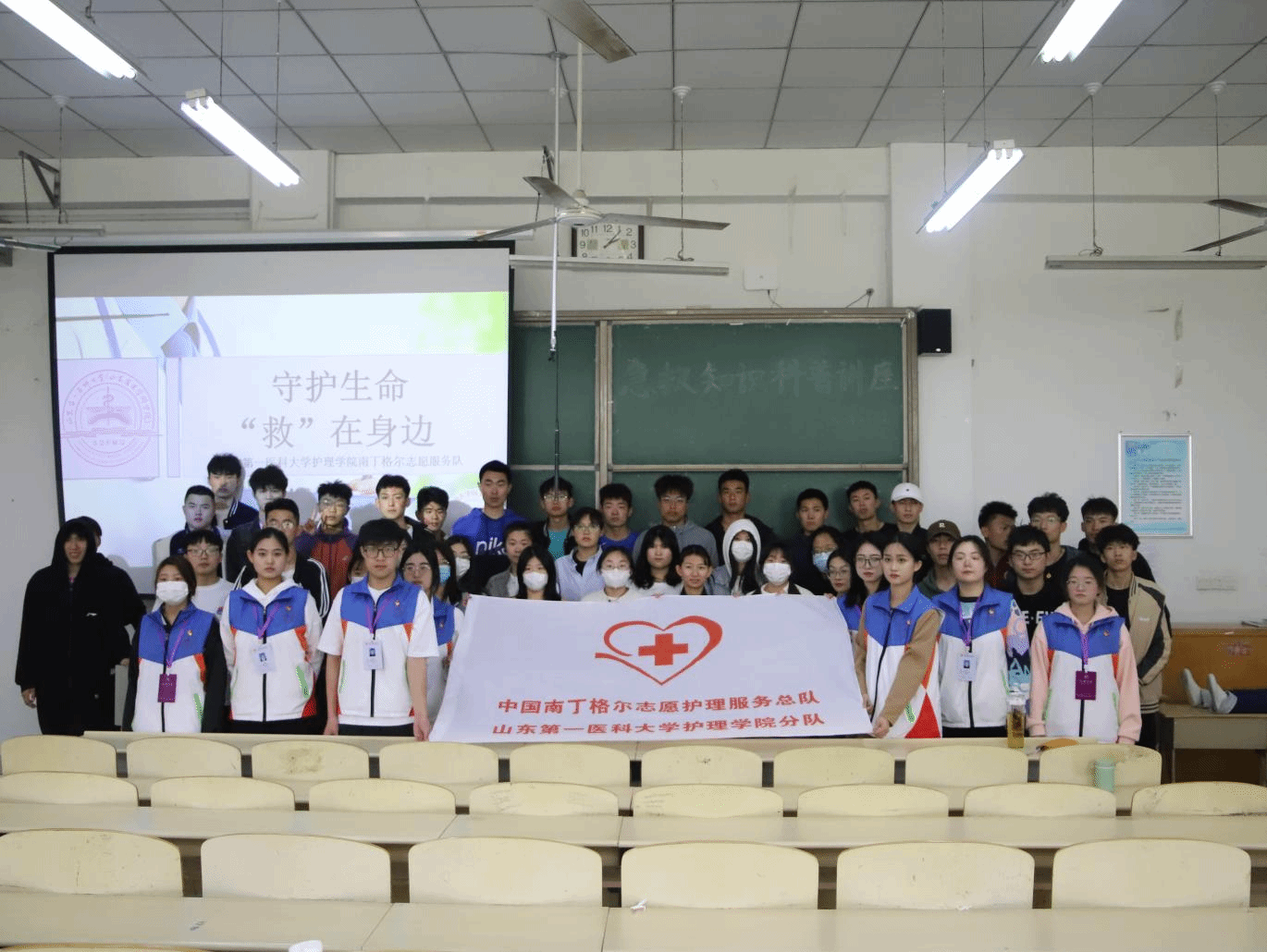 为推动急救知识的普及,进一步提高自救互救的意识和能力,提升大学生综合素养,4月11日,护beat365官方网站南丁格尔志愿服务队走进泰山学院开展“守护生命 ‘救’在身边”急救知识科普宣讲活动。泰山学院体育学院教师晁毓菡、我院辅导员吴春燕参加活动。