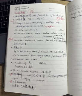 1、生词,大家可以准备一个生词本,把不认识的词都整理下来,反复记忆,可以把单词书上没记下来的也写到一起,后期复习会很方便。