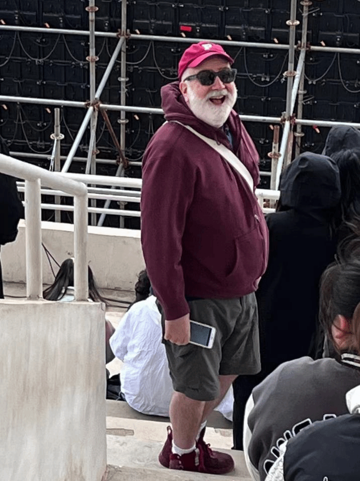 这是一位好似圣诞老人的外教老师,他真心的笑容感染了我们,给我们带了好多快乐。微笑是有力量的,一直保持微笑会融化这个世界的冰冷。