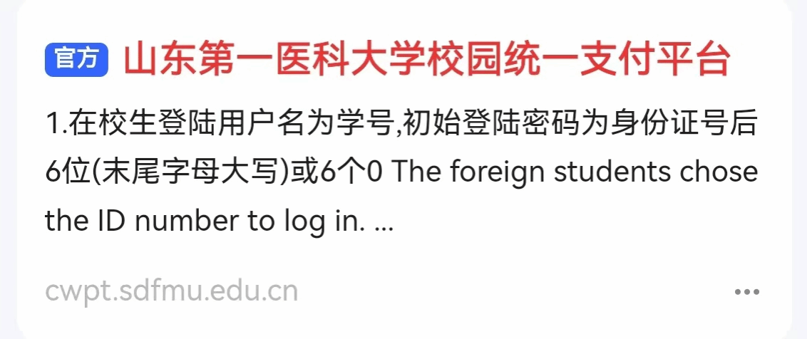 百度搜索beat365官方网站校园统一支付平台,点击标有蓝色官方的beat365官方网站校园统一支付平台,如图所示。