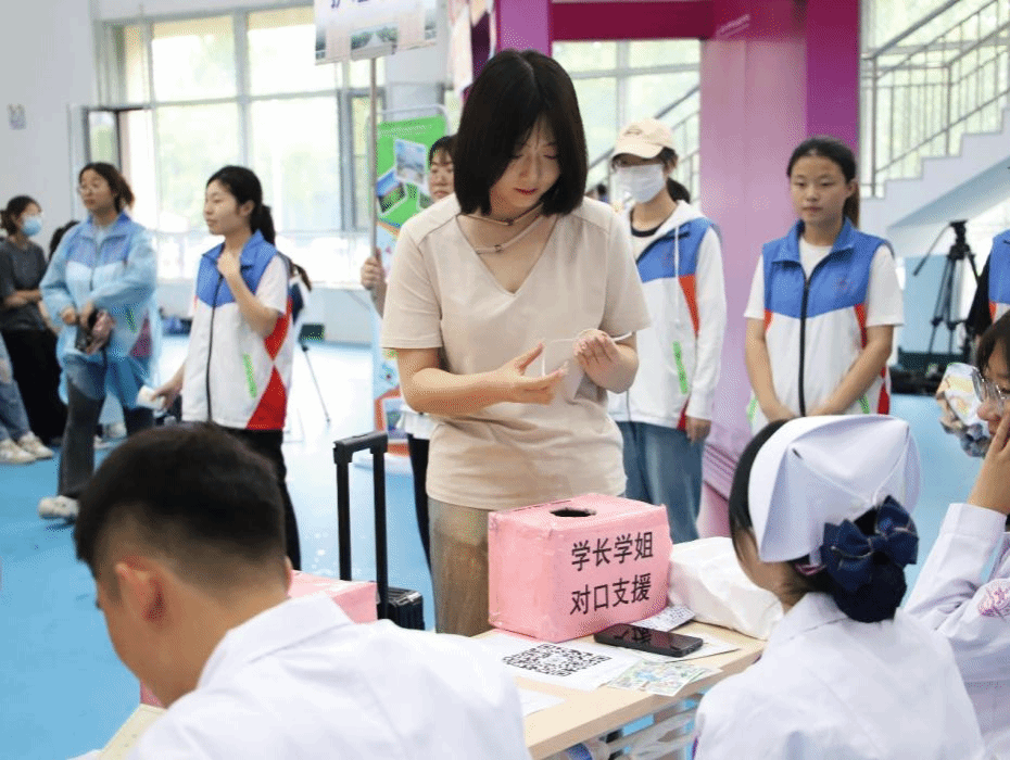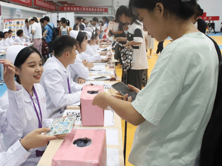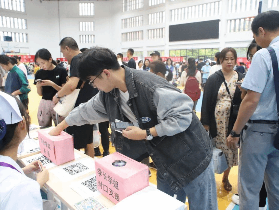 学院还准备了新老生互动环节,学长学姐对新生的寄语承载着他们真挚的祝福,传达着热切的关心和欢迎。迎新现场融入了“对口支援”活动,新生从纸箱中可随机抽取到一位学长或学姐的联系方式,并与该学长或学姐取得联系,以便更好更快地适应大学生活。