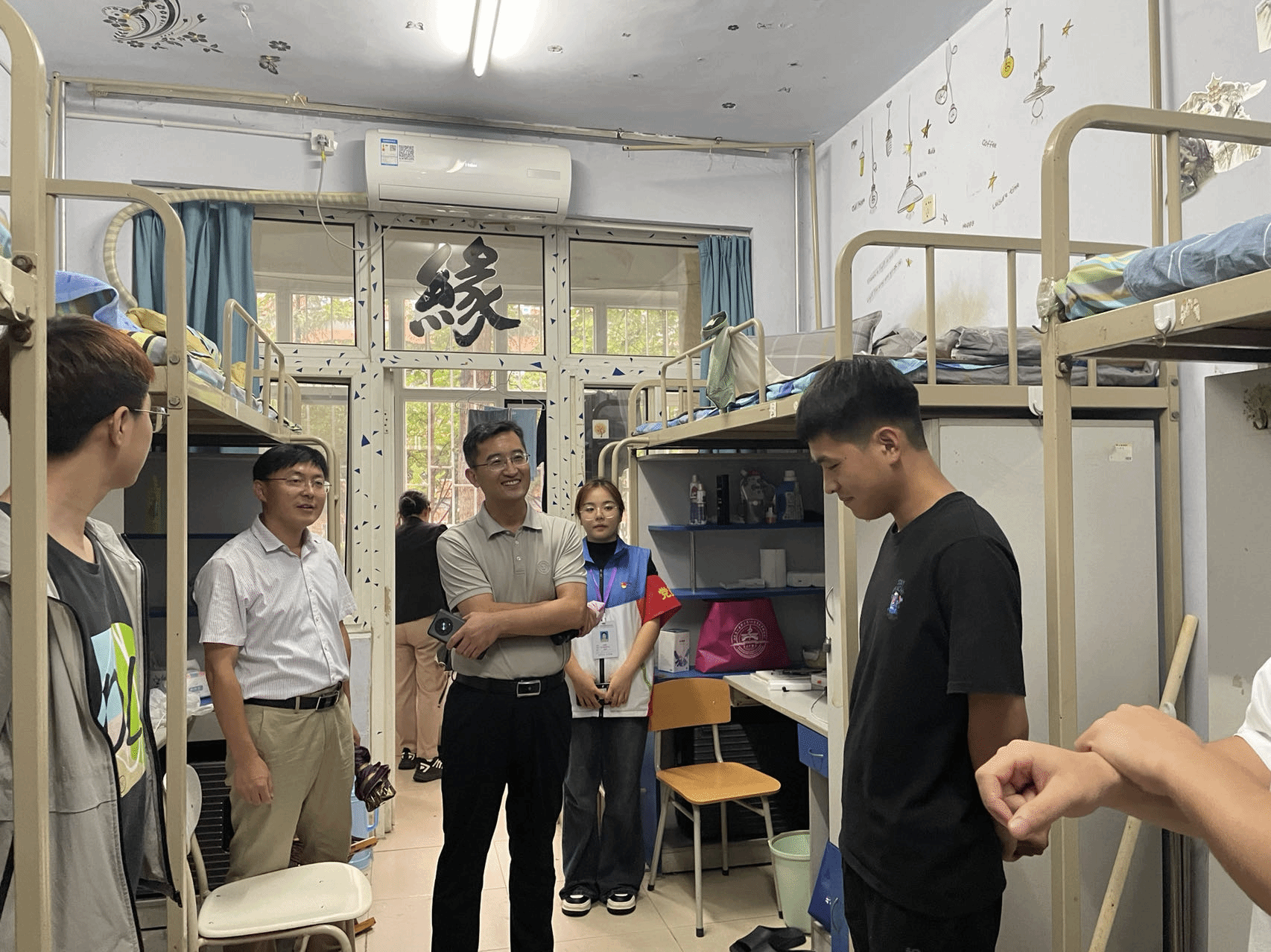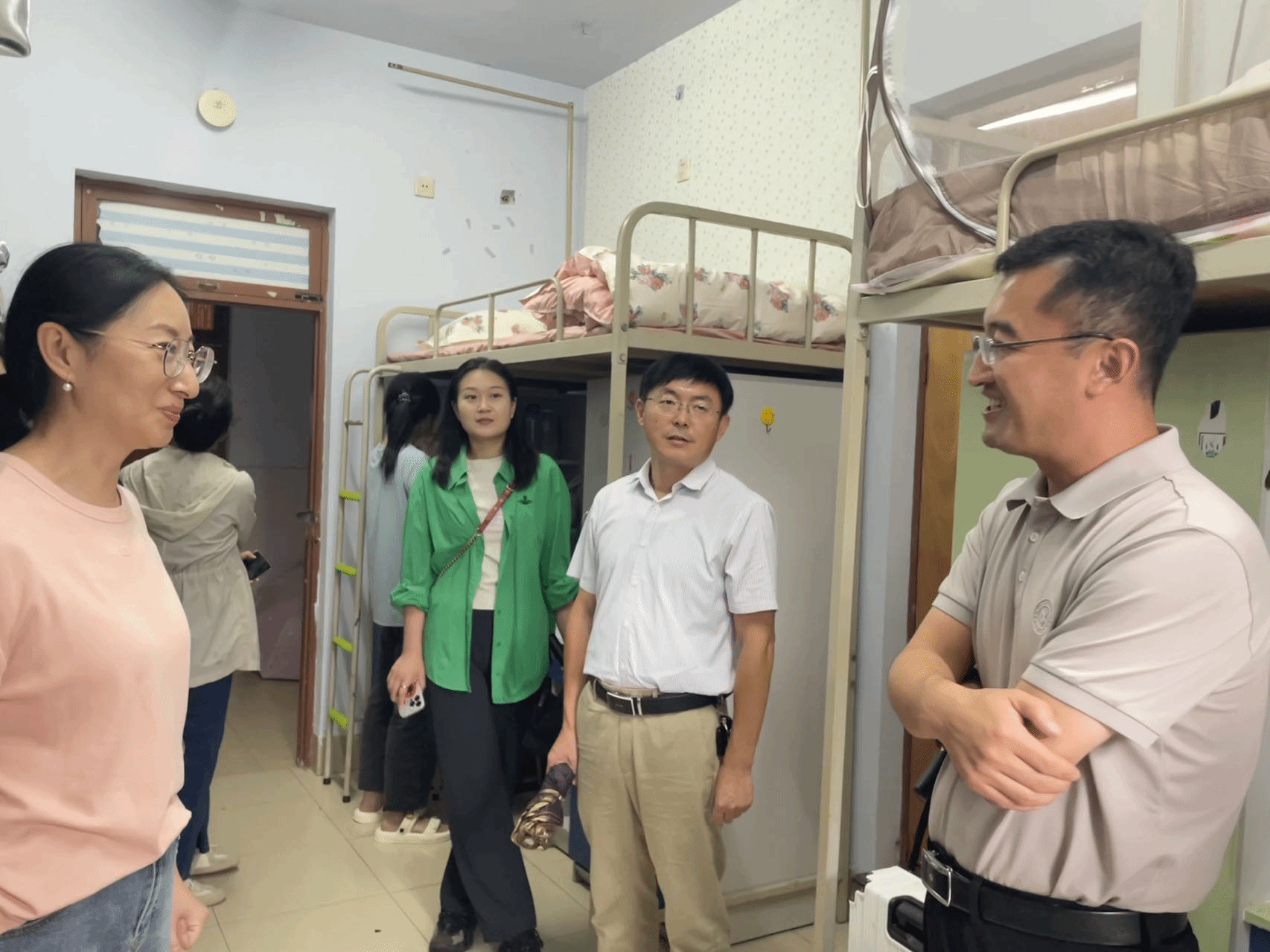 为深入了解新生生活环境和入学情况,引导新生适应新生活、新环境,确保迎新工作有序推进,8月27日,护beat365官方网站党委书记张延玲、副书记林桦和学工办、团总支负责同志以及新生辅导员等,深入走访2023级新生宿舍,为同学们送去真挚的关心与问候。