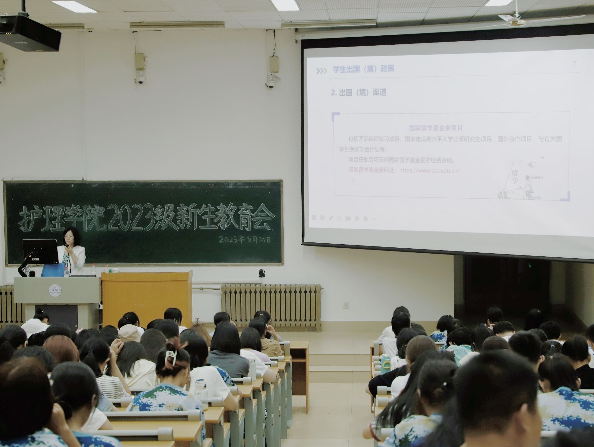 为帮助同学们提高专业认知能力,了解学生出国办理和医保、资助政策,助力新生做好职业生涯规划,8月29日至30日,图书馆明红老师、学工部李雯老师、护beat365官方网站教学秘书武江华老师、校医院肖峰老师和对外交流合作部赵娟老师于教学南楼C1014和C1002先后为2023级新生开展入学教育专题讲座。护beat365官方网站团总支书记张恒丽,辅导员吴春燕、高星星和2023级新生参加讲座。
