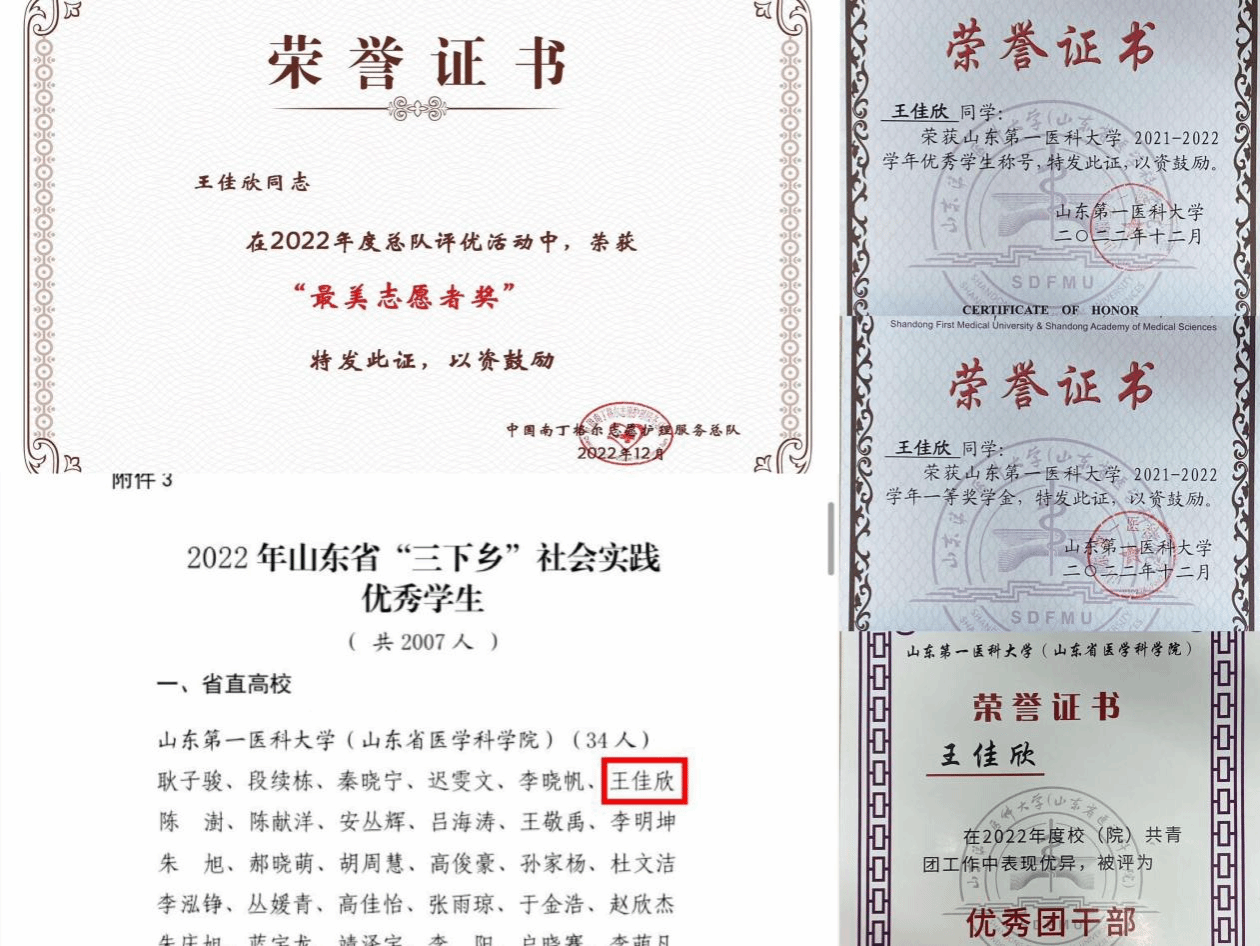 进入大学后她便报名加入南丁格尔志愿服务队,她的志愿服务之旅已足足有两个年头,累计志愿服务时长270小时。疫情来临之际她毅然投身到疫情防控工作中,参与并组织队员做好核酸采样、物资调配等工作。连续两年暑假参加山东省“三下乡”社会实践活动,荣获2022年山东省“三下乡”优秀学生称号。